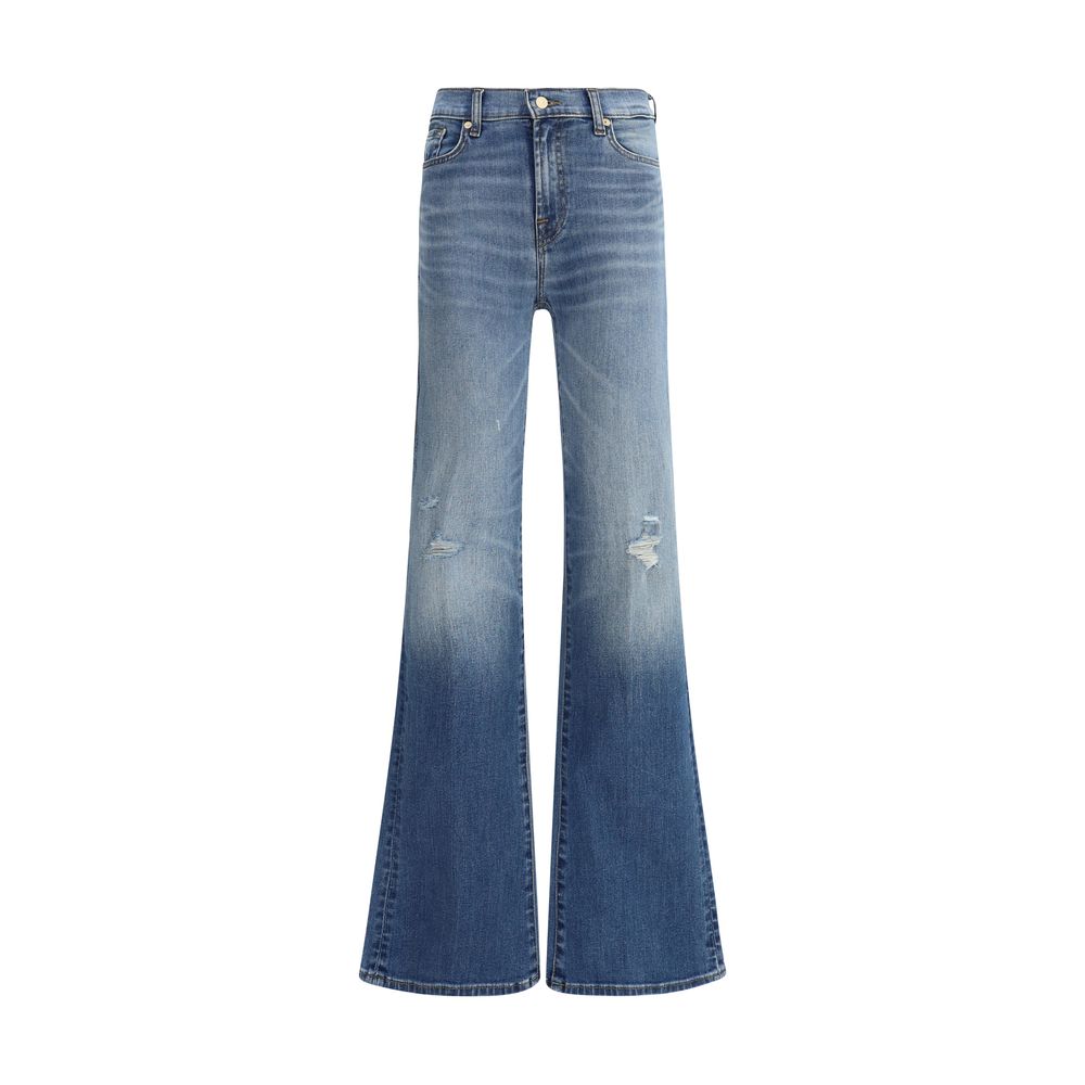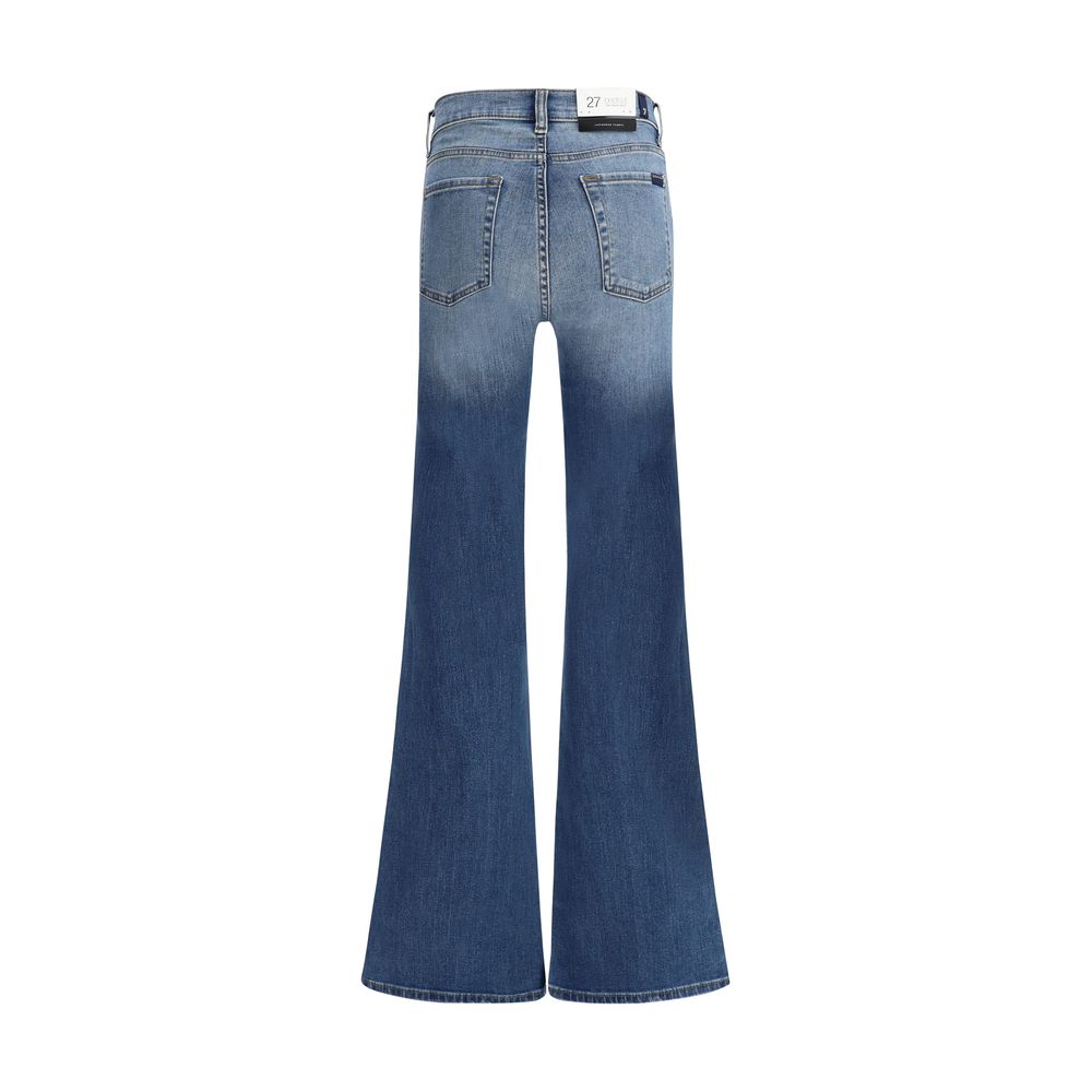 The Mimosa cotton Jeans from 7For is a five-pocket flared style. It features a button-and-zip front closure and belt loops on the waistband. The brand’s iconic signature leather patch, pressure-printed on the back, adds a distinctive and classy detail. With its classic silhouette and high waist, this garment is ideal for any occasion.