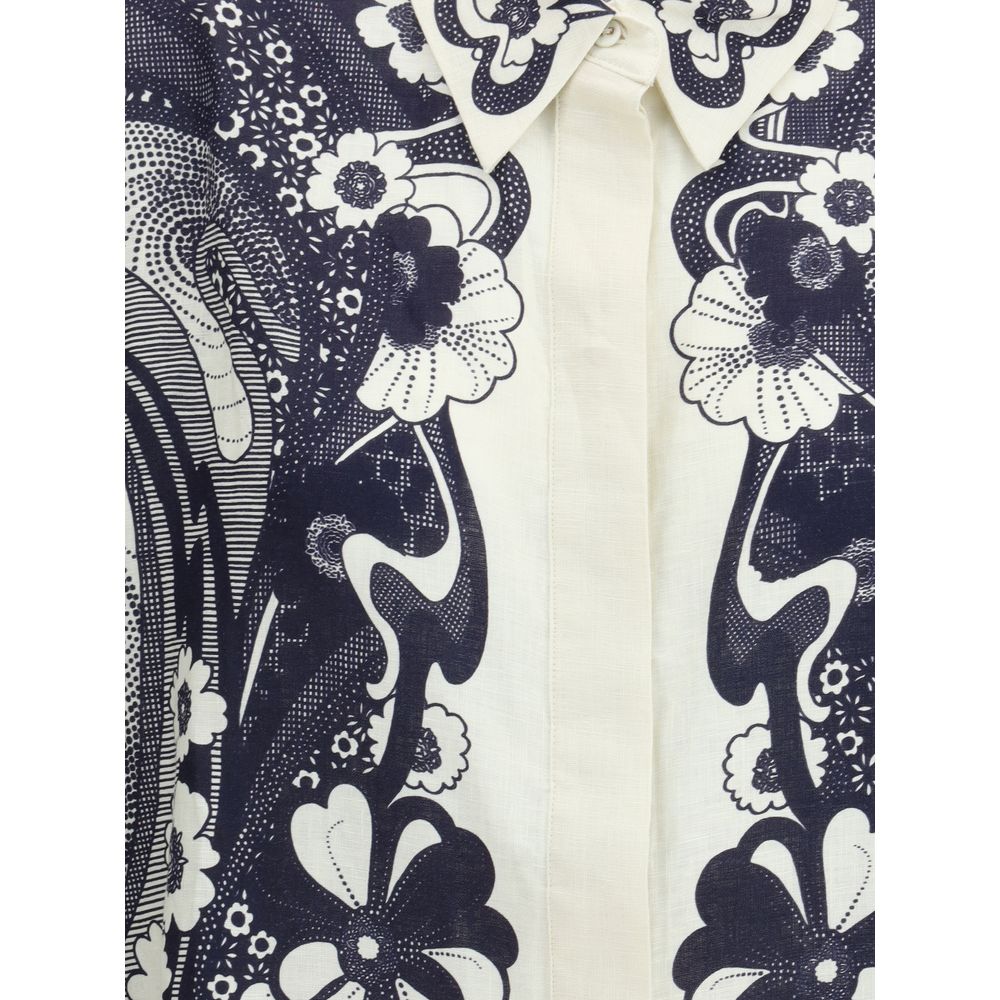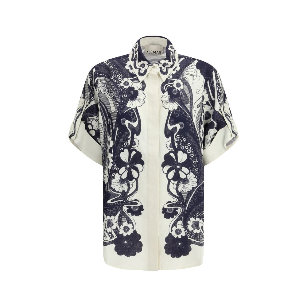 The Mickey Shirt by Alemais is a refined design that combines tailored details with a relaxed style. The pointed collar with rise gives structure and definition to the silhouette, enhancing the collar with a modern touch. Turn-up sleeves, adjustable in length, add versatility and a casual accent, perfect for a casual yet polished look. The hidden button placket, finished with fabric-covered buttons, completes the design with elegance and restraint. An ideal shirt for those seeking originality and sophistication in everyday wear.