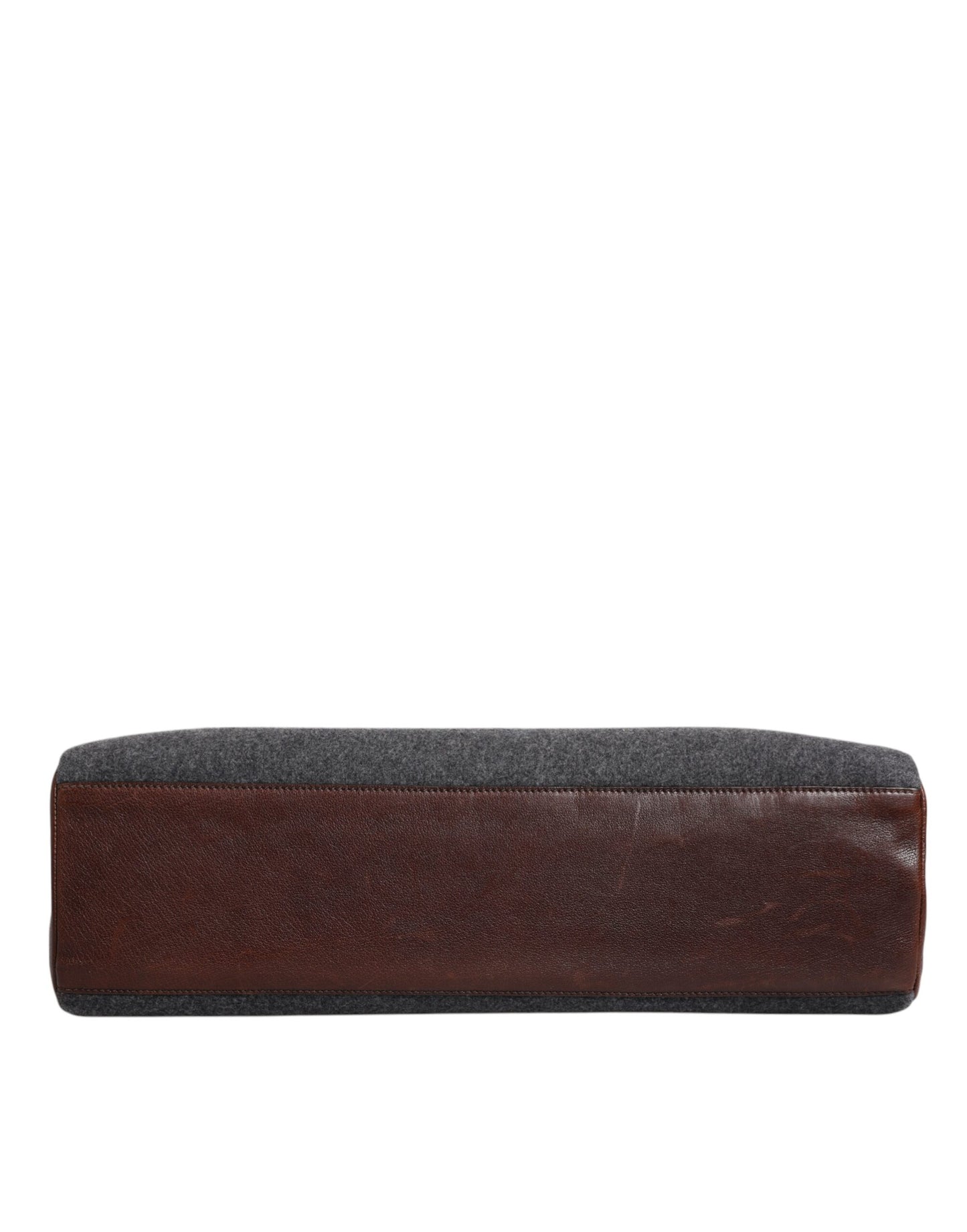 Brunello Cucinelli Brown Gray Leather Cognac Wool Business Tote Bag
