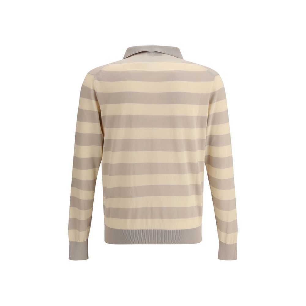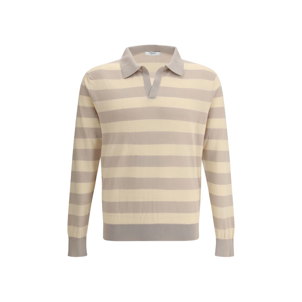 Portofino cotton Polo Shirt by Cruna features a classic collar and front opening for a stylish and functional design. Ribbed cuffs and hem ensure a snug and comfortable fit. The horizontal stripe pattern adds a fresh and modern touch, making this garment perfect for a casual yet refined style.