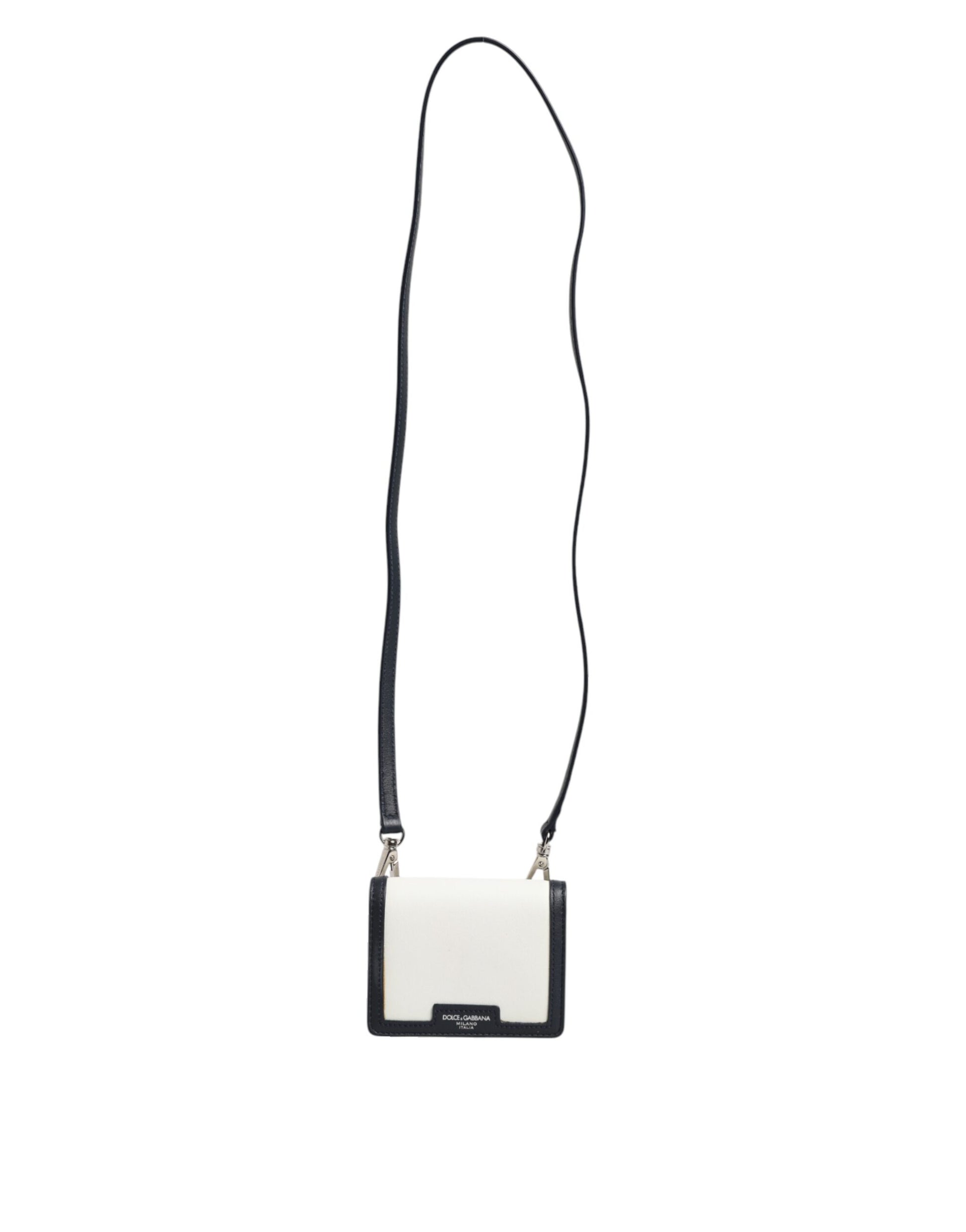 Dolce & Gabbana Beige Black Leather Card Holder Crossbody Men Borse Bag