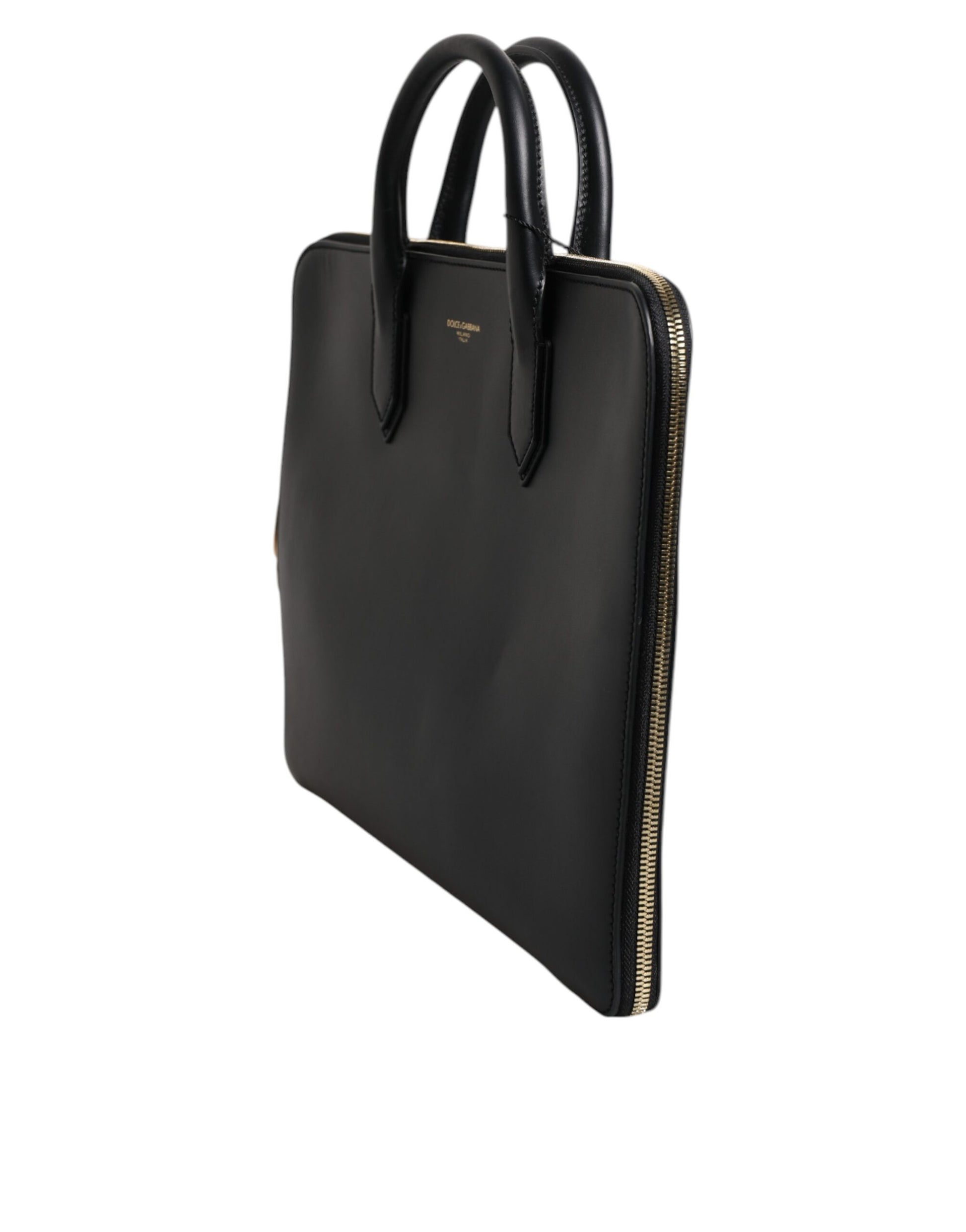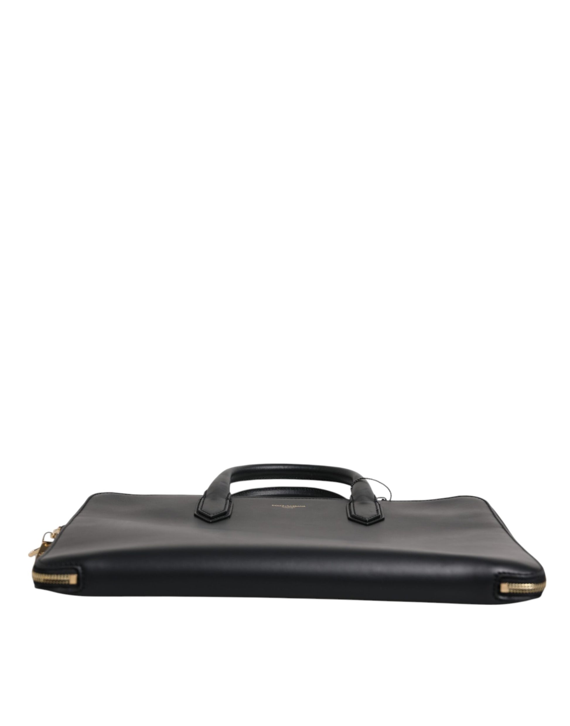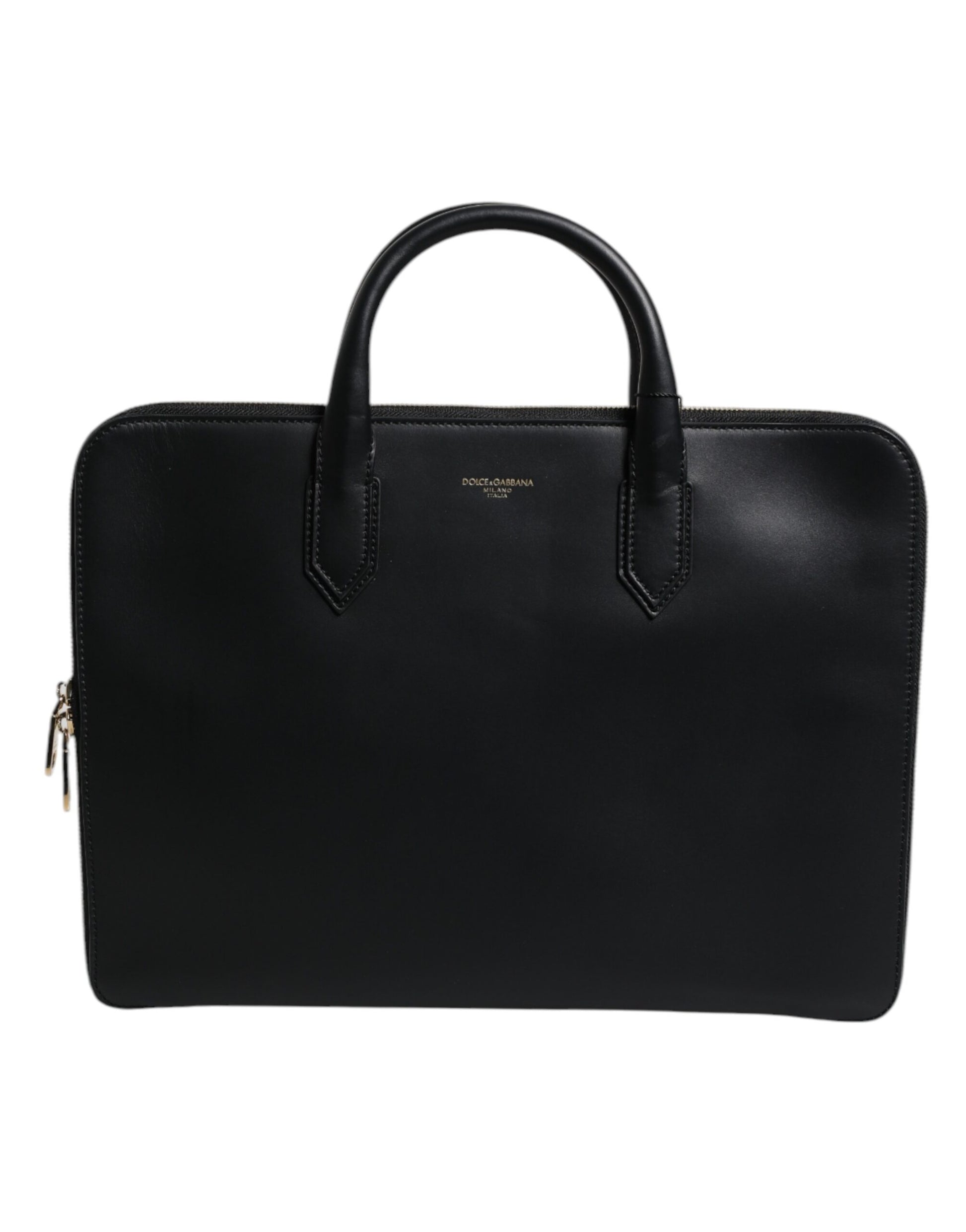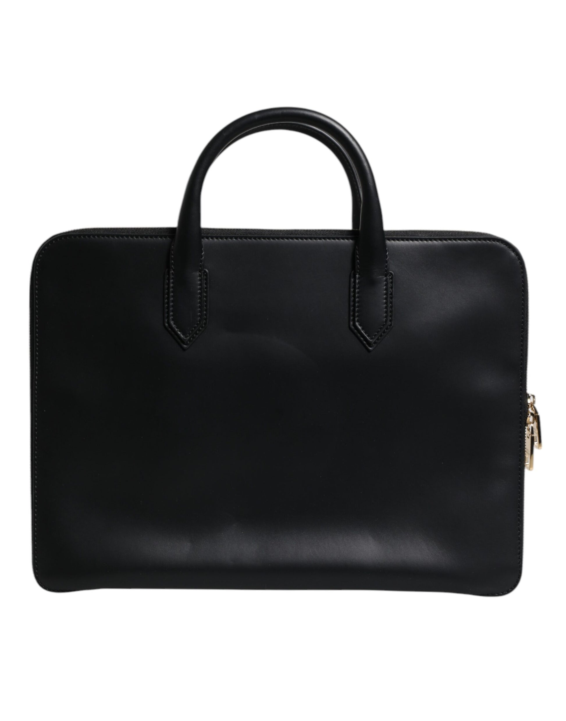 Dolce & Gabbana Black Calfskin Heat Pressed Logo Monreale Briefcase Bag