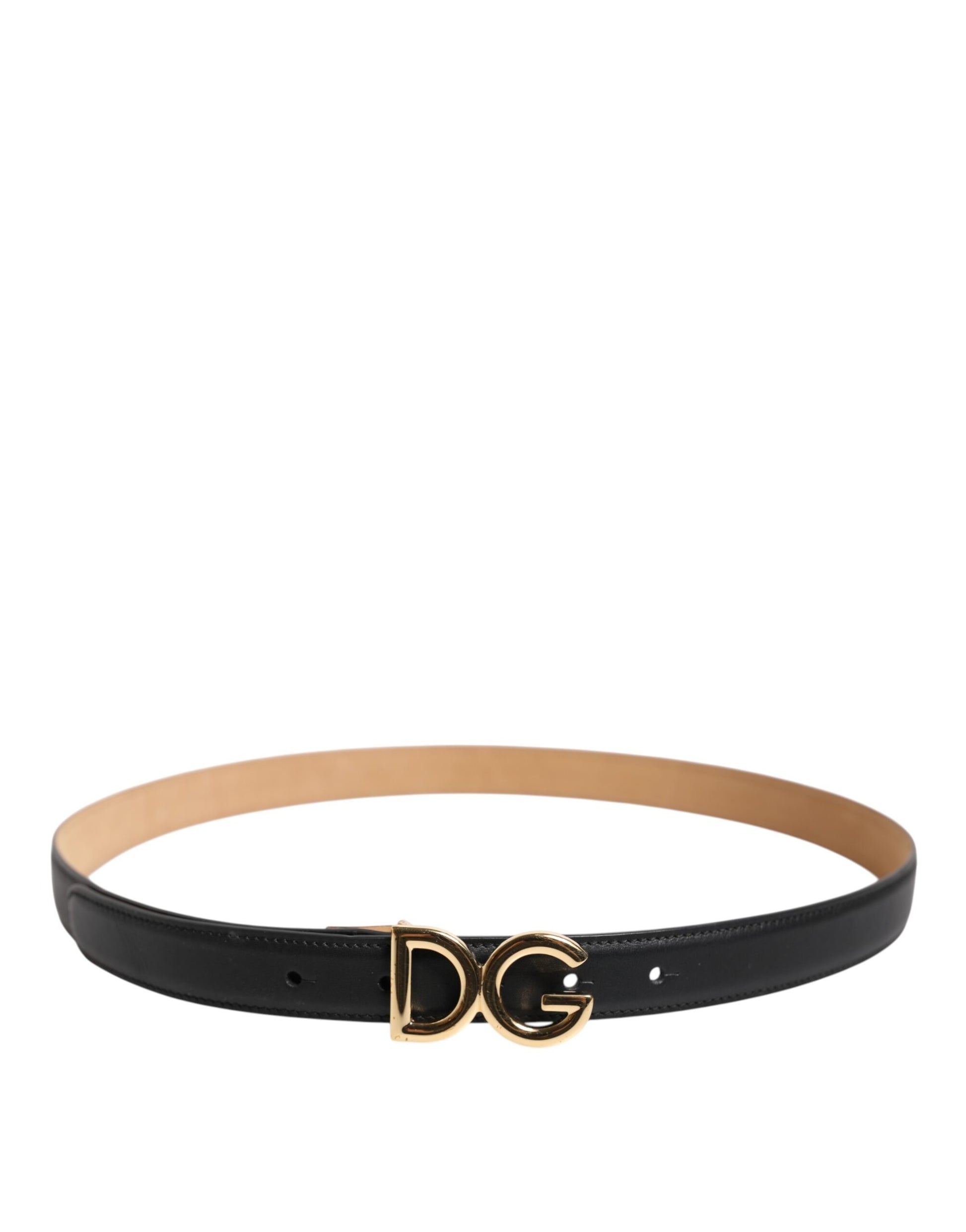 Dolce & Gabbana Black Calfskin Leather Gold DG Buckle Belt