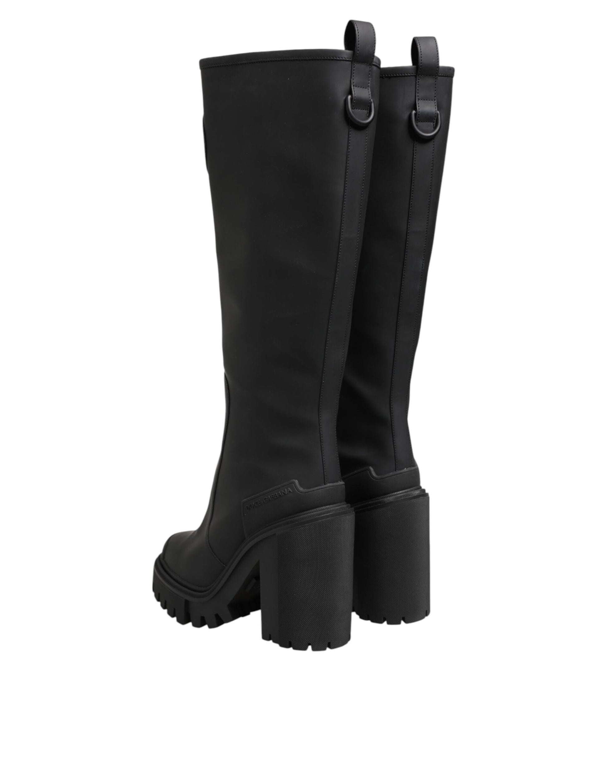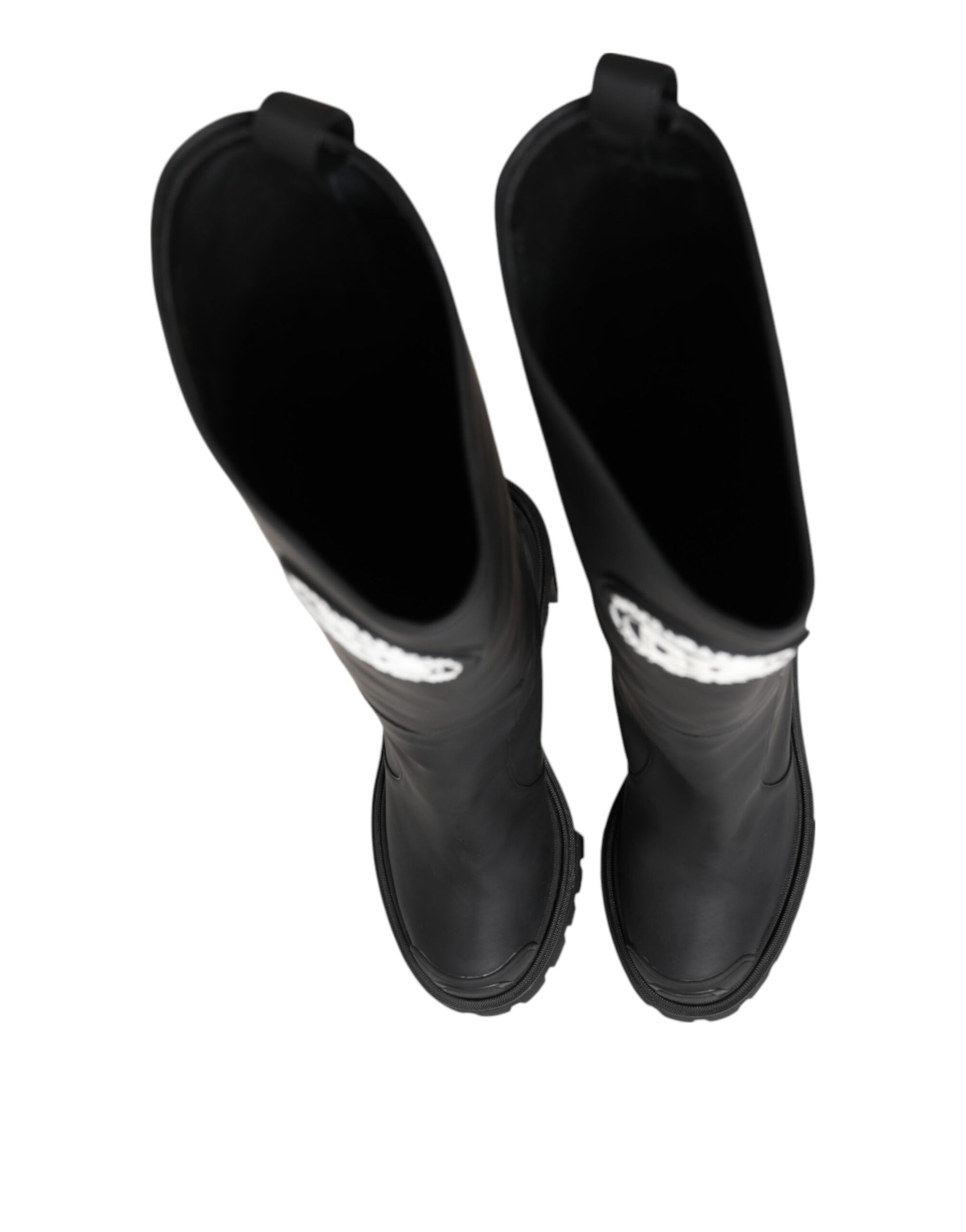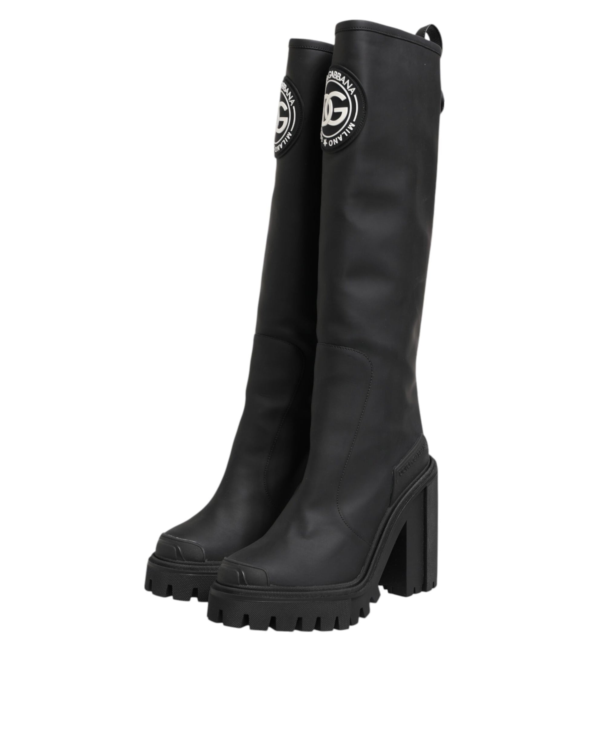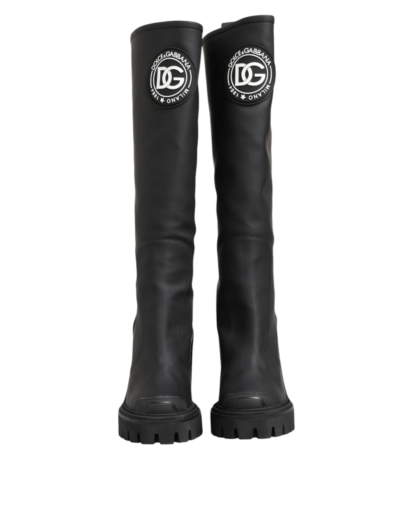Dolce & Gabbana Black DG Logo Trekking Knee High Boots Shoes