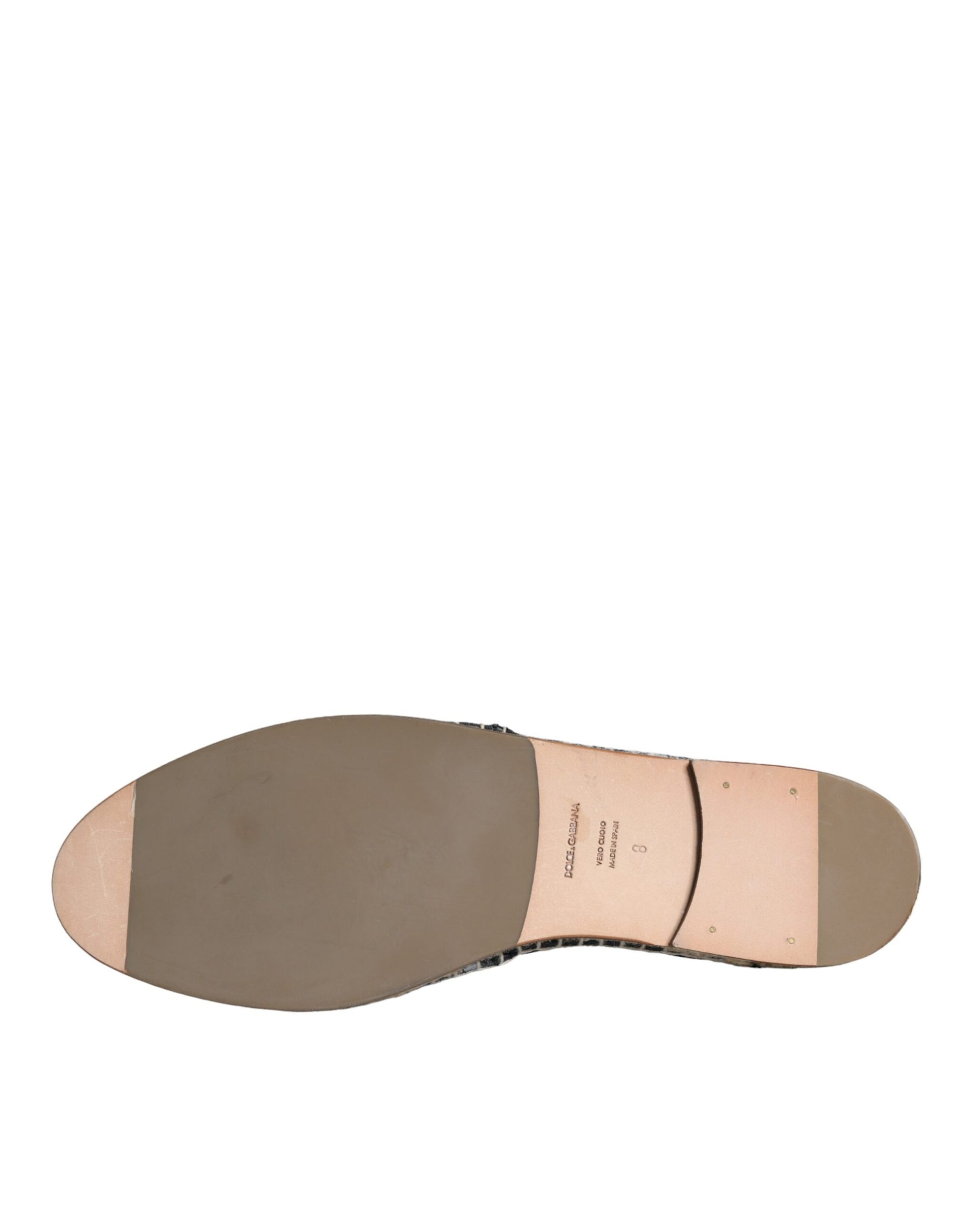 Dolce & Gabbana Black Floral Cotton Leather Espadrilles Shoes