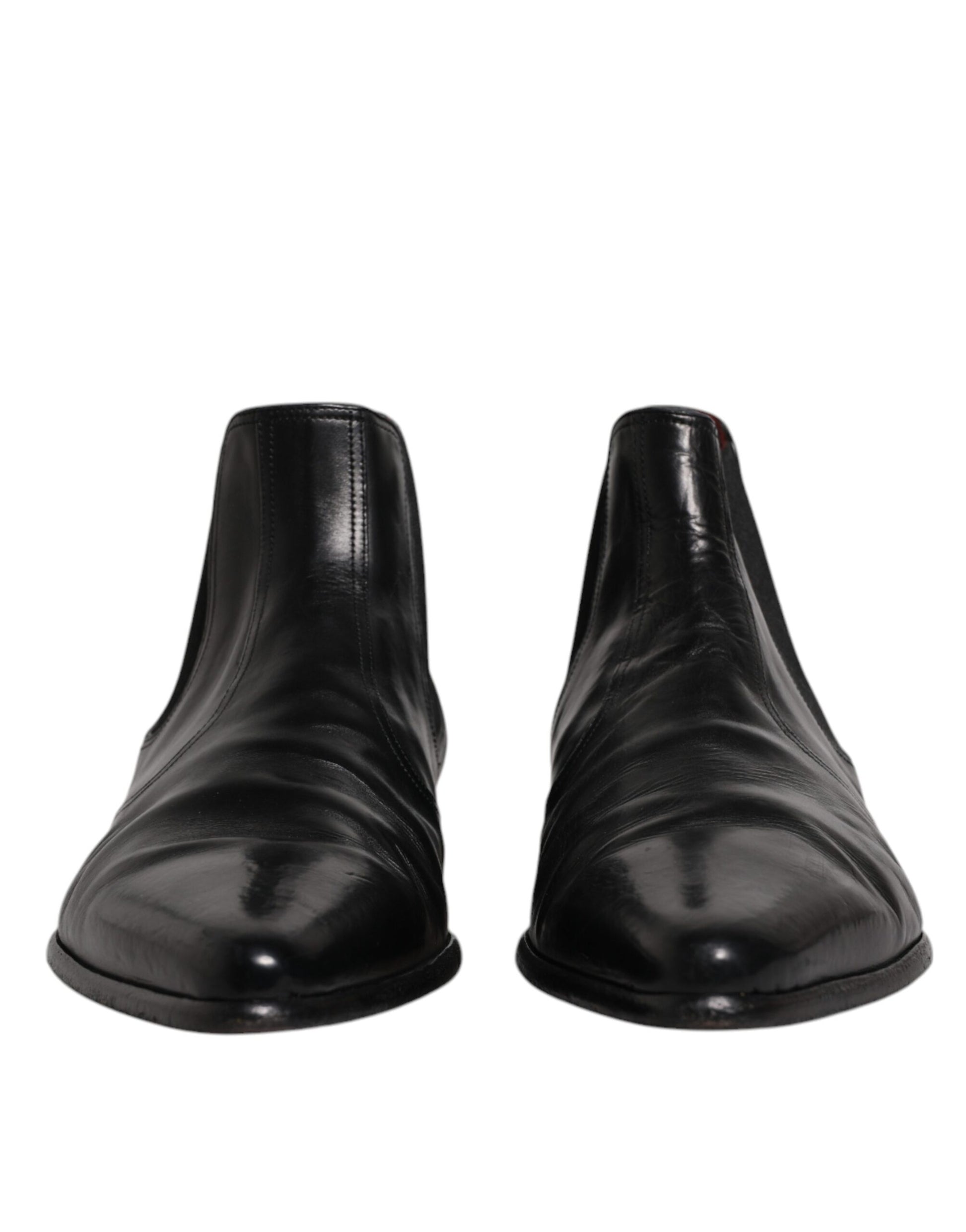 Dolce & Gabbana Black Leather Chelsea Men Ankle Boots Shoes