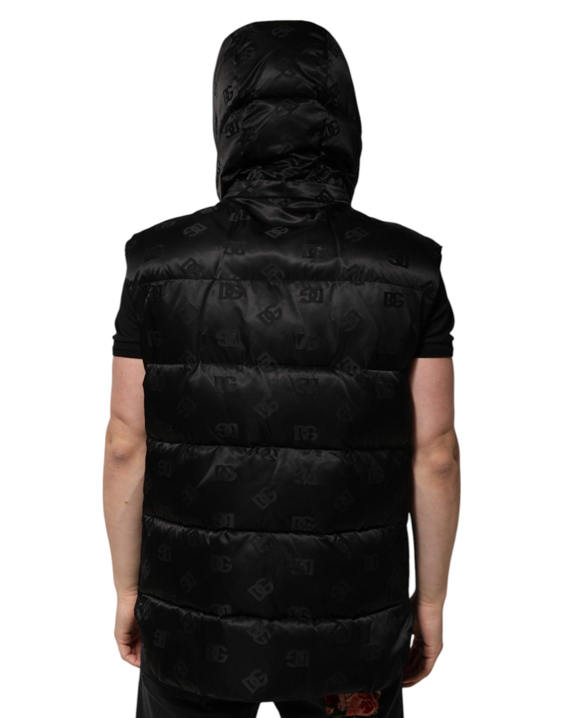 Dolce & Gabbana Black Quilted Sleeveless Hooded Vest Jacket