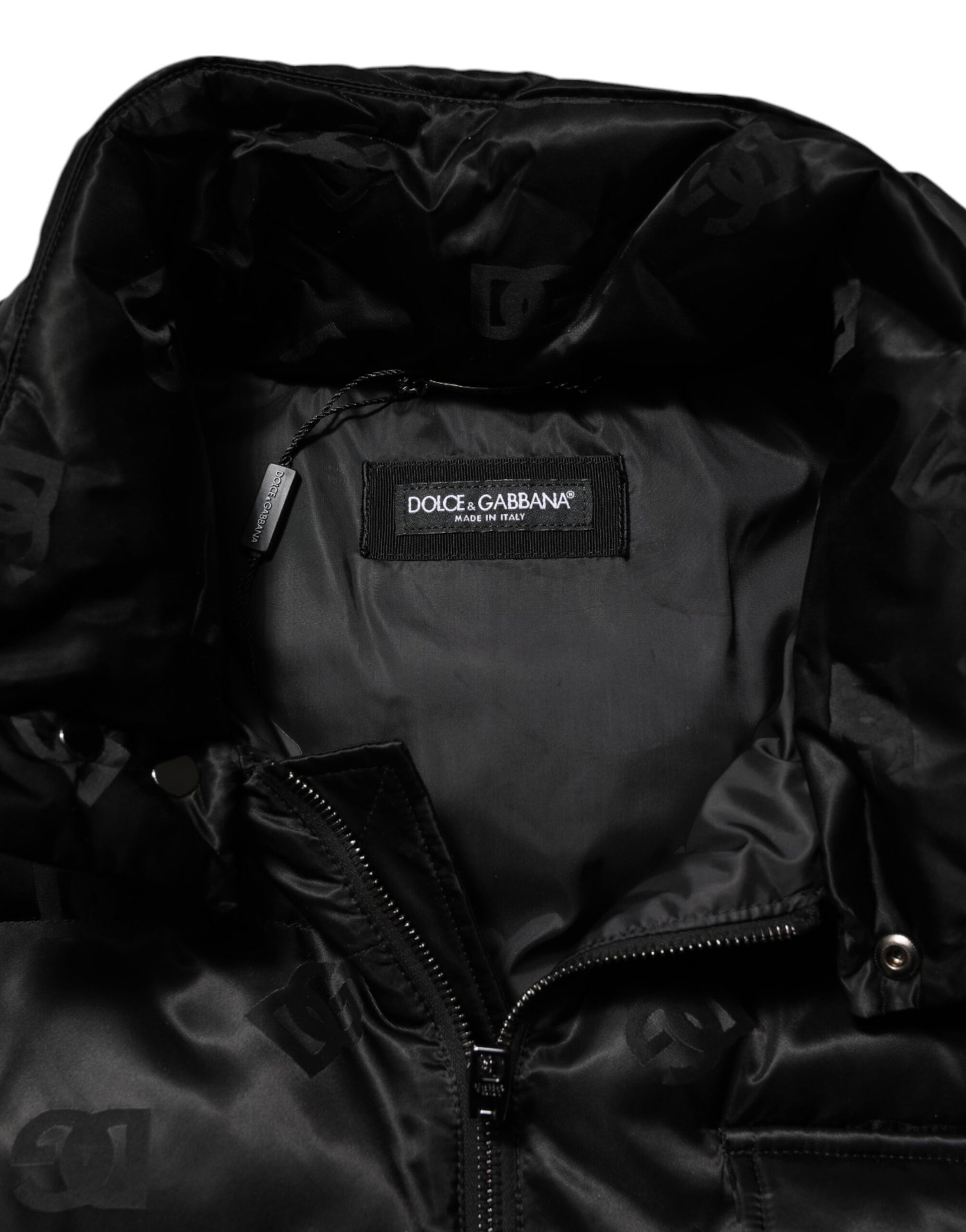 Gorgeous brand new, 100% Authentic Dolce & Gabbana black quilted vest with a repeating pattern that appears to be the Dolce & Gabbana logo or monogram, consistent with the brand’s aesthetic.