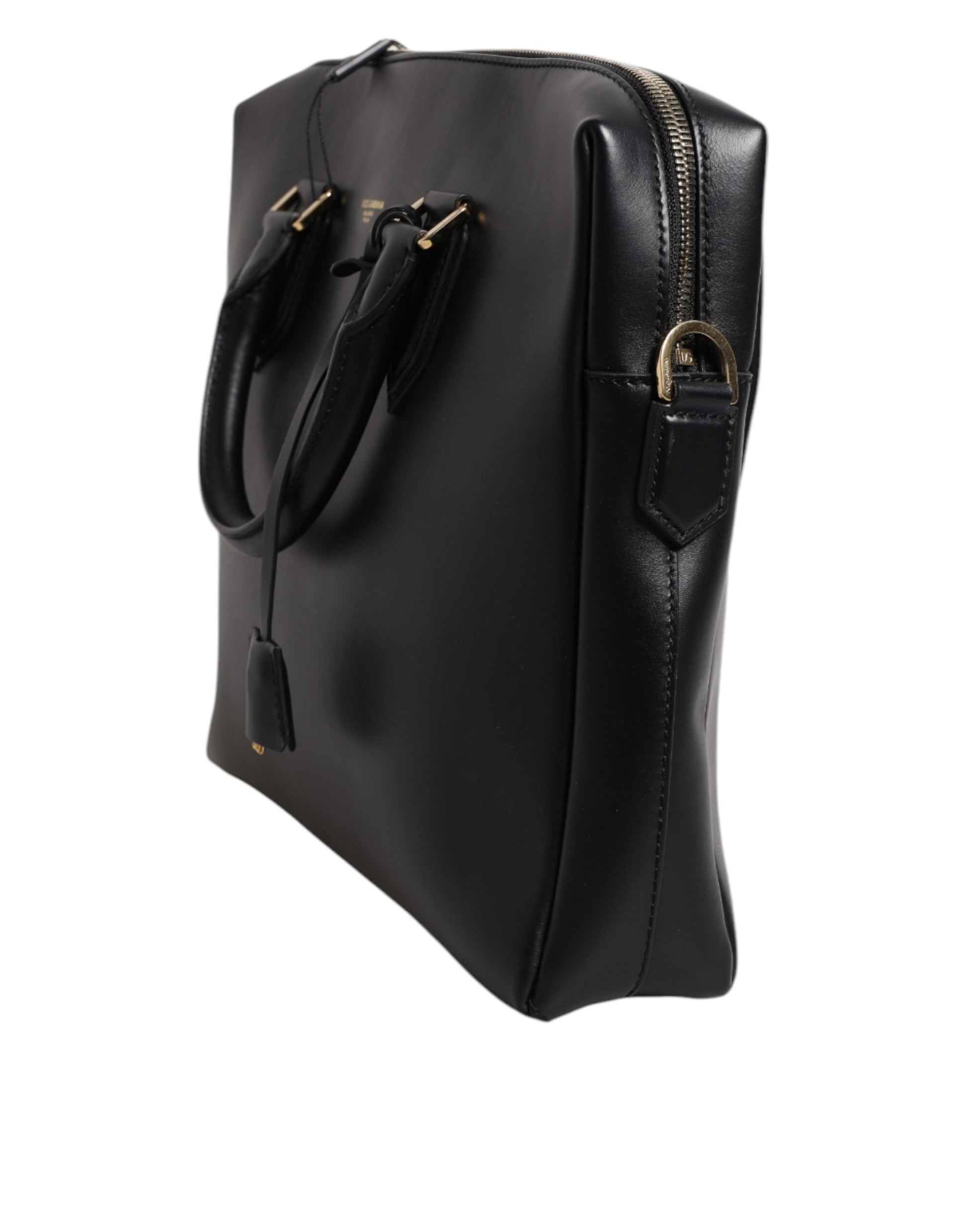 Dolce & Gabbana Black Smooth Leather Logo Printed Monreale Briefcase Bag