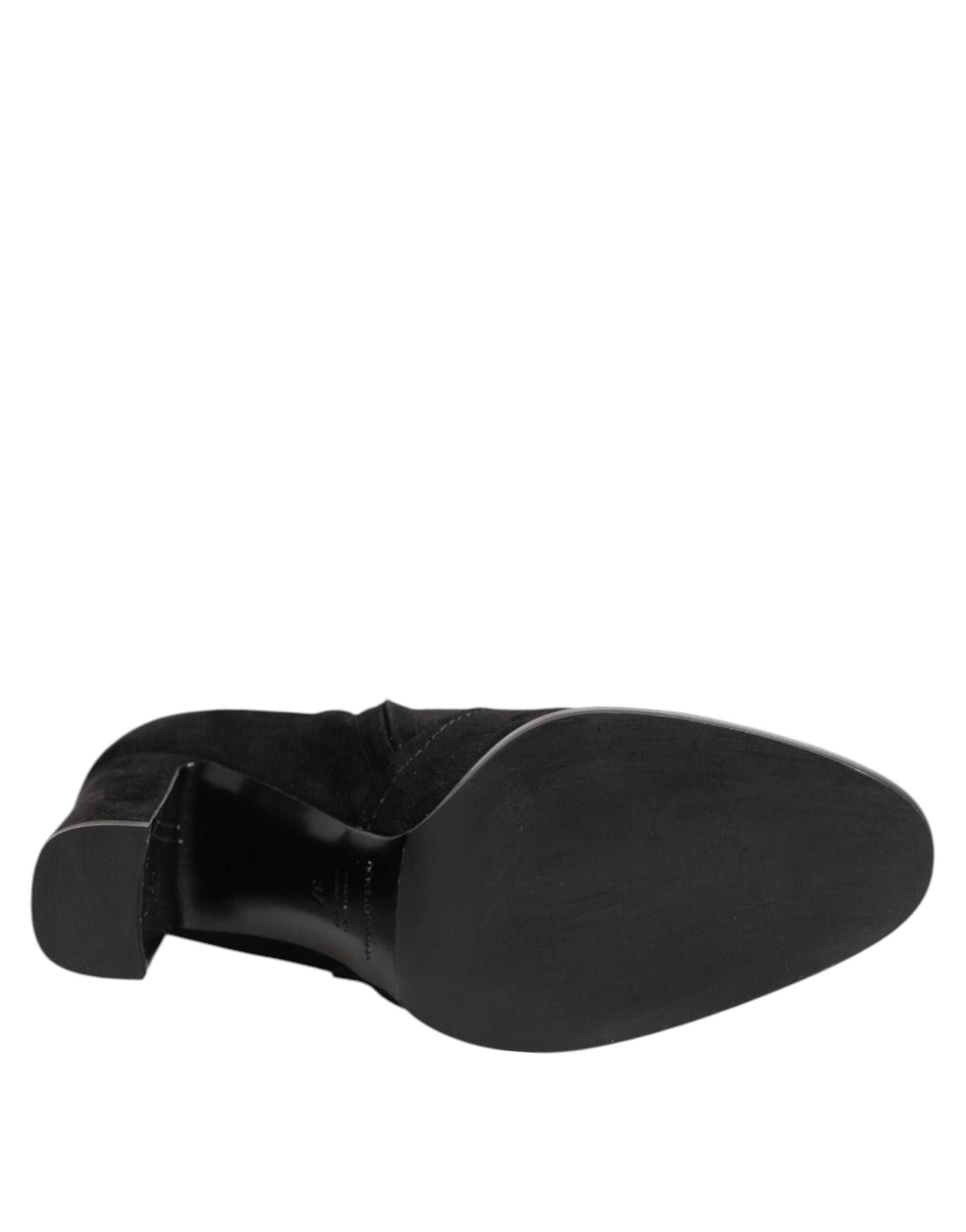 Dolce & Gabbana Black Suede Leather Mid Calf Boots Shoes