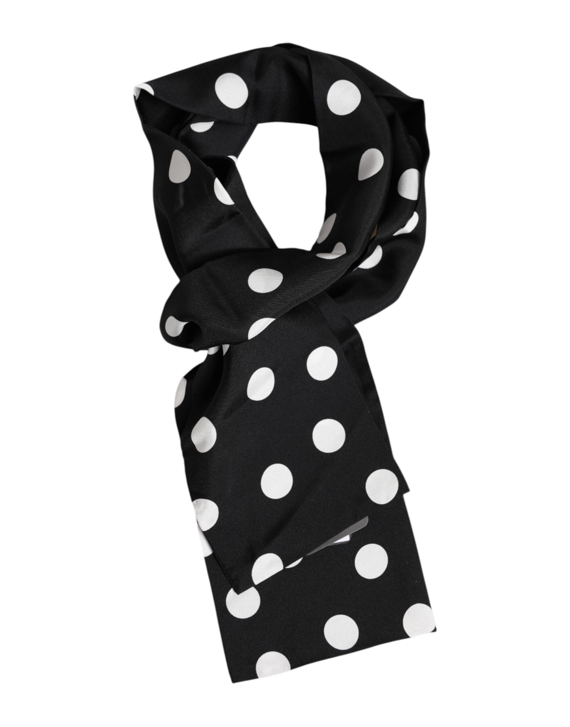 Dolce & Gabbana Black White Polka Dot Silk Men Foulard Scarf