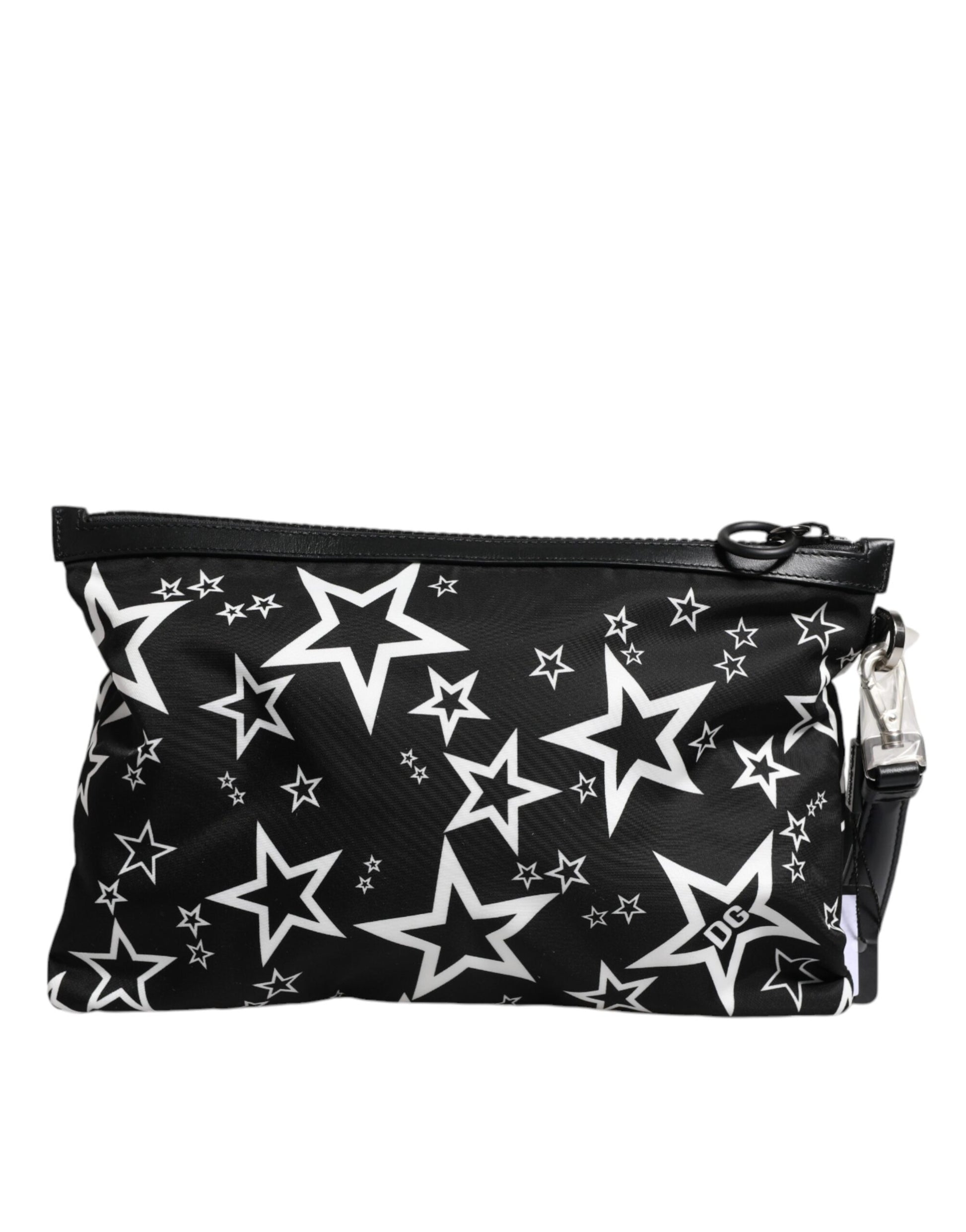 Dolce & Gabbana Black White Stars Pattern Clutch Pouch Bag
