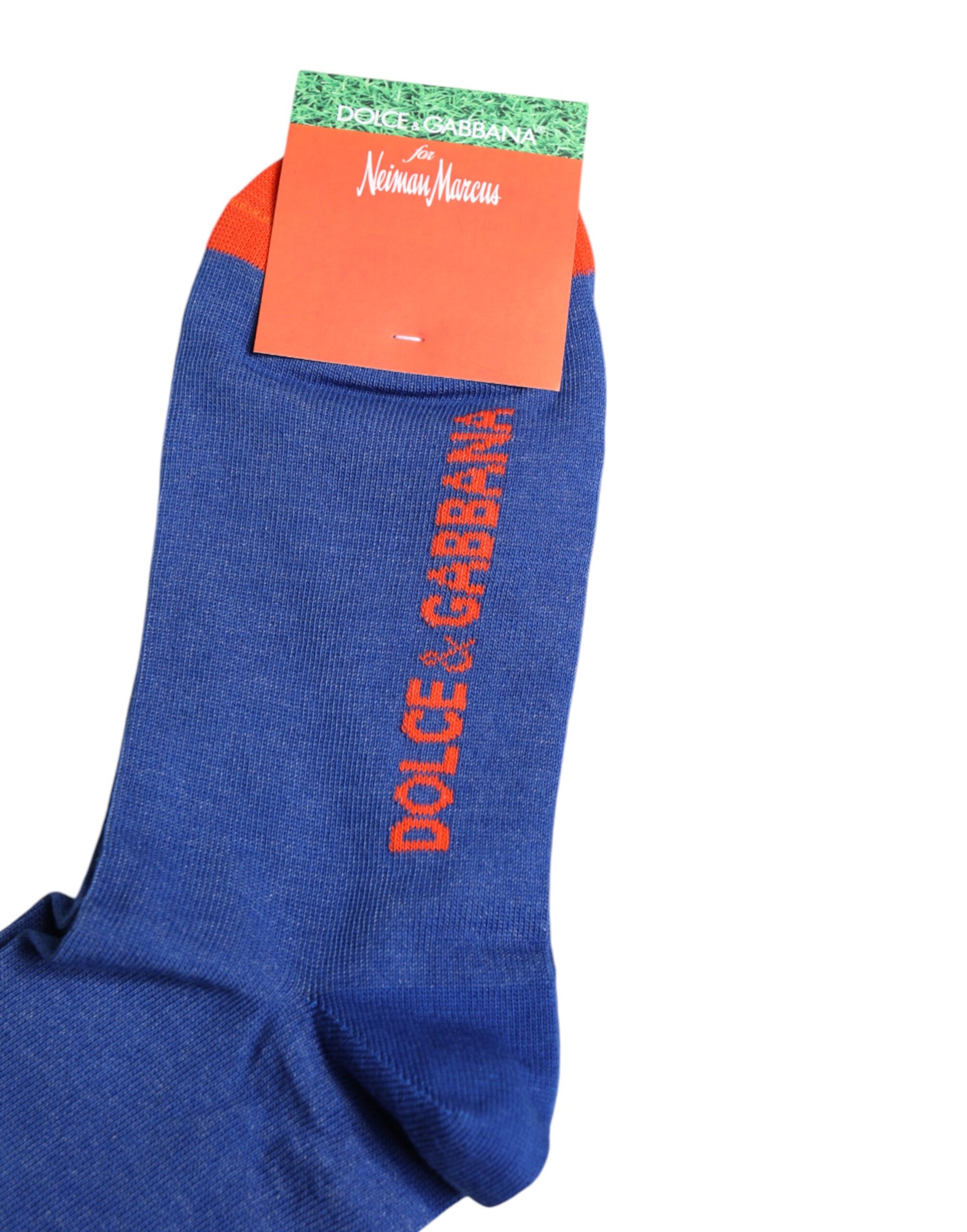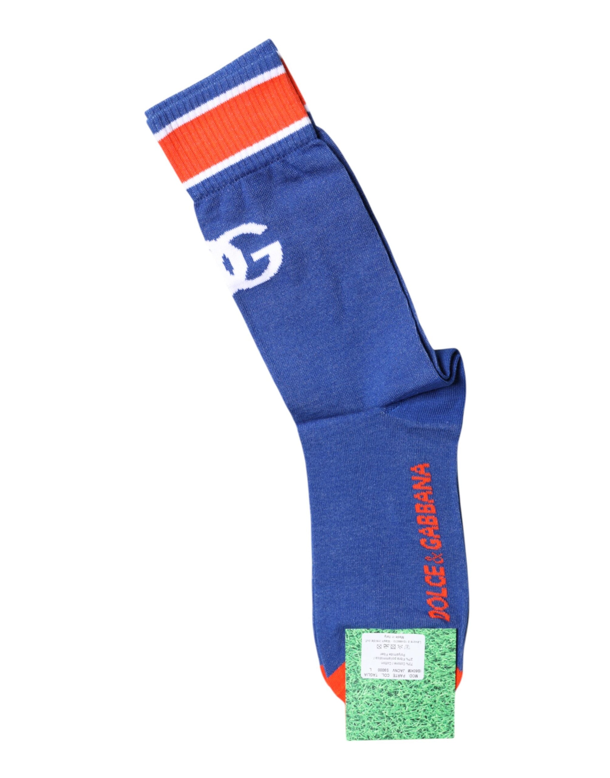 Dolce & Gabbana Blue Cotton DG Logo Print Mid Calf Socks