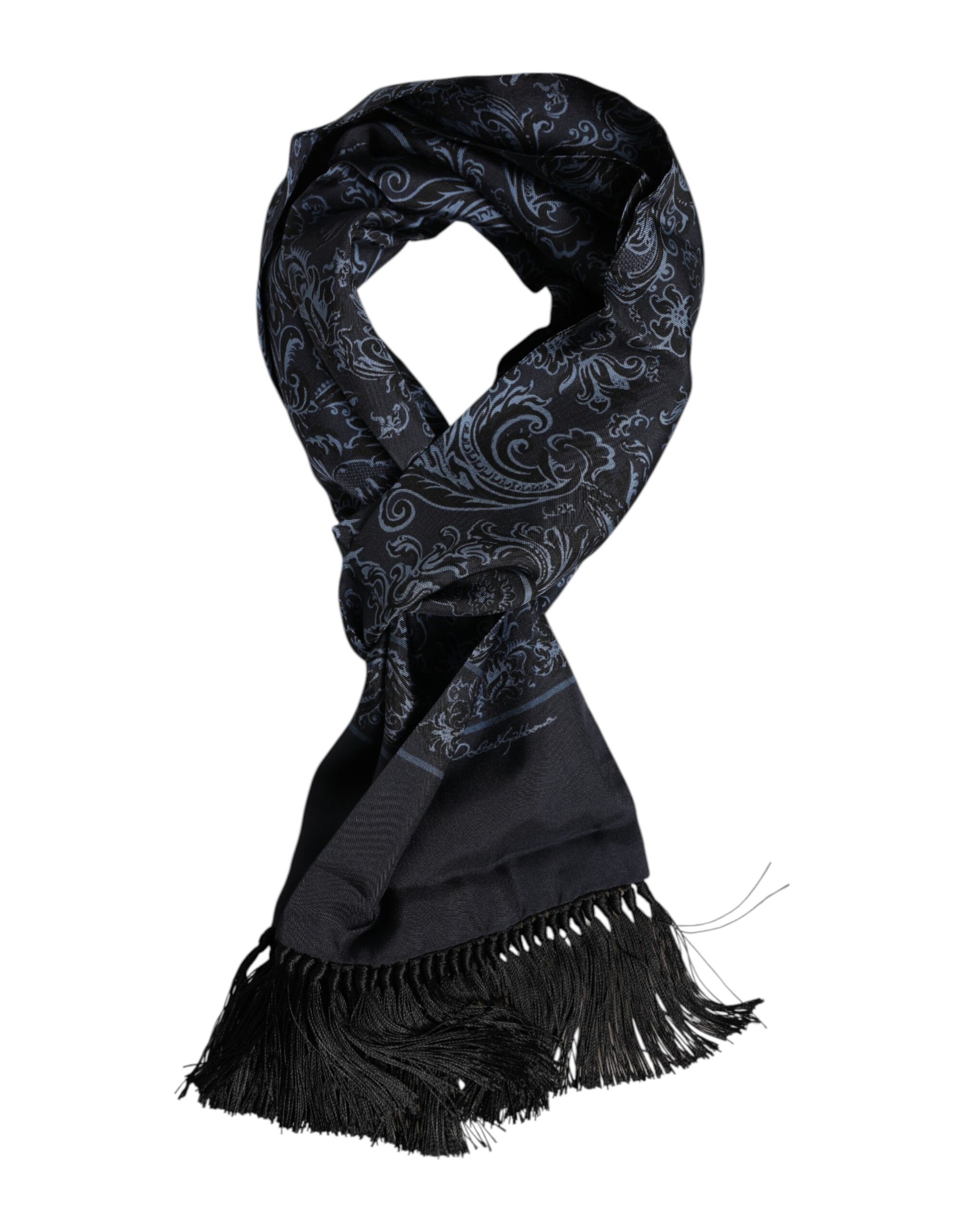 Dolce & Gabbana Blue Printed Silk Fringes Men Foulard Scarf