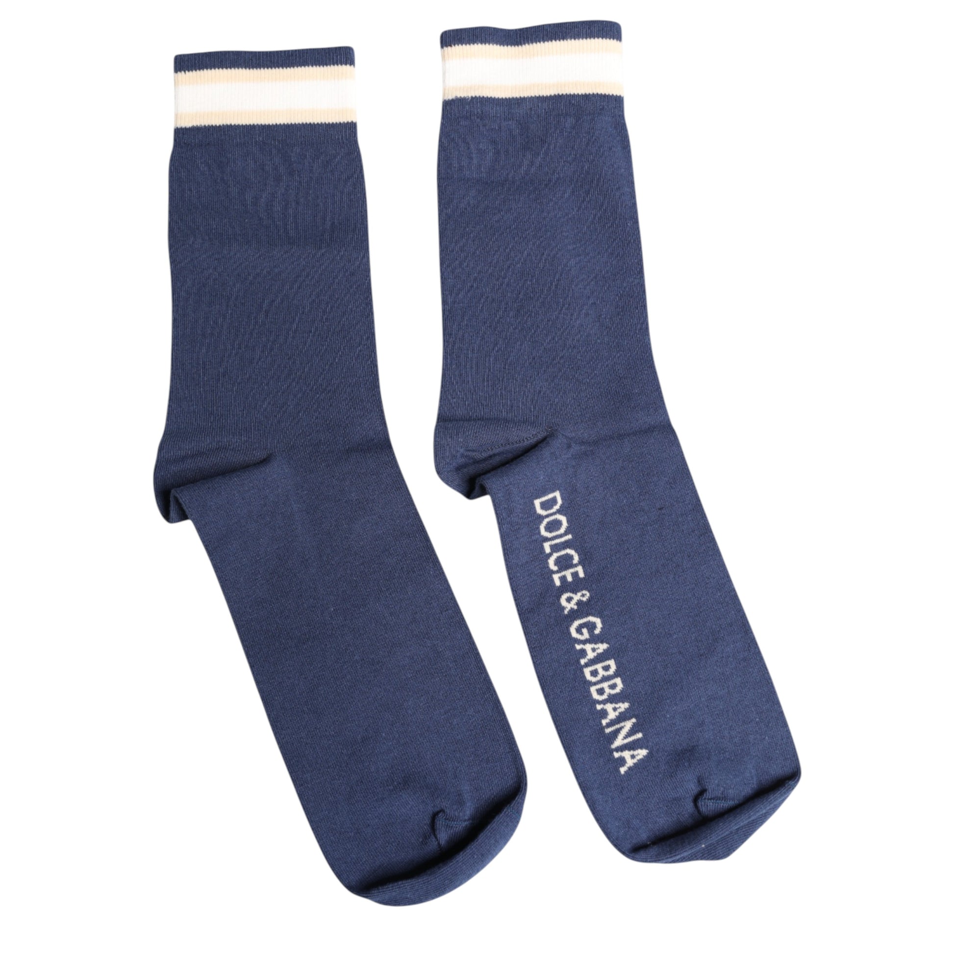 Dolce & Gabbana Blue Stretch DG Logo Print Mid Calf Socks