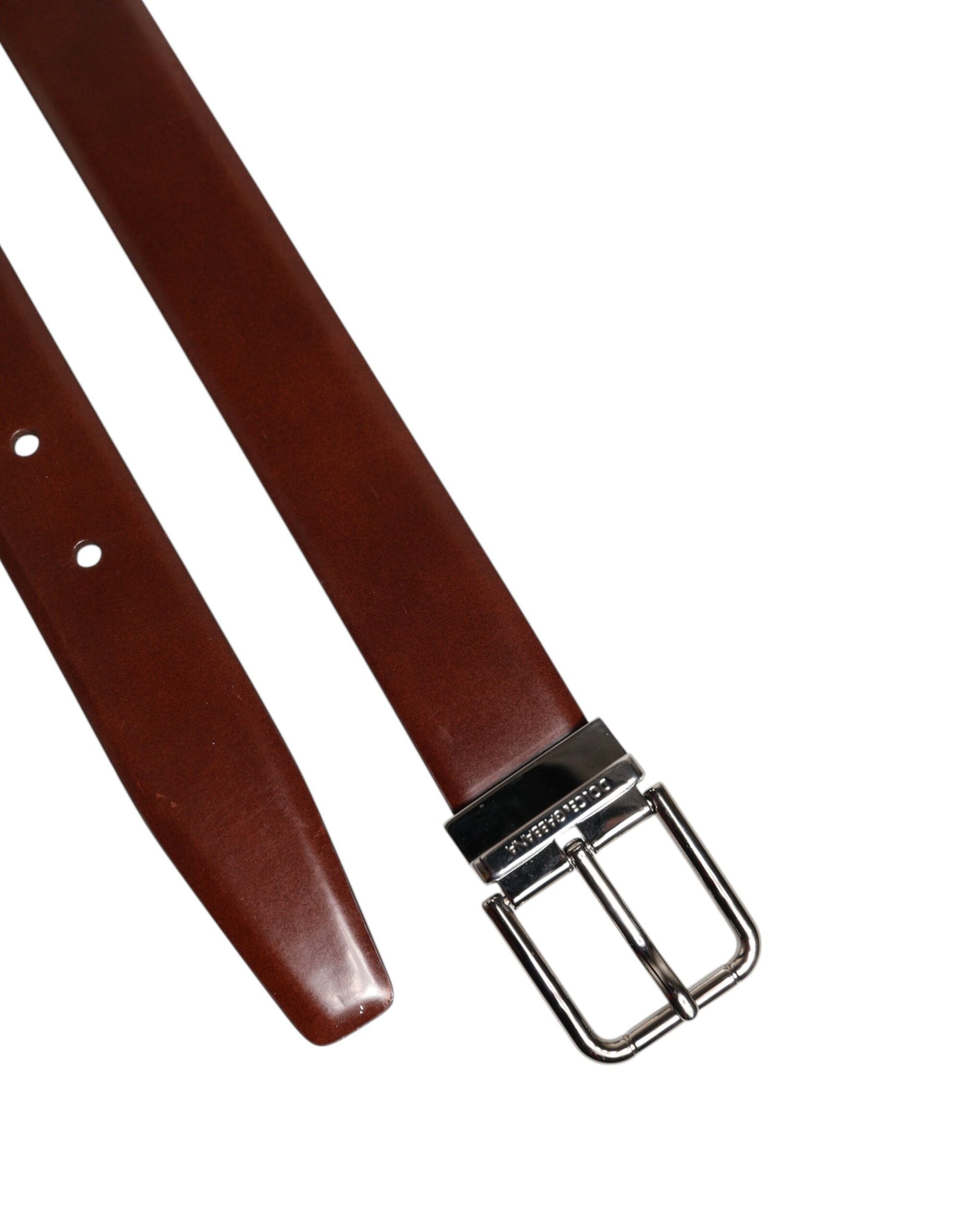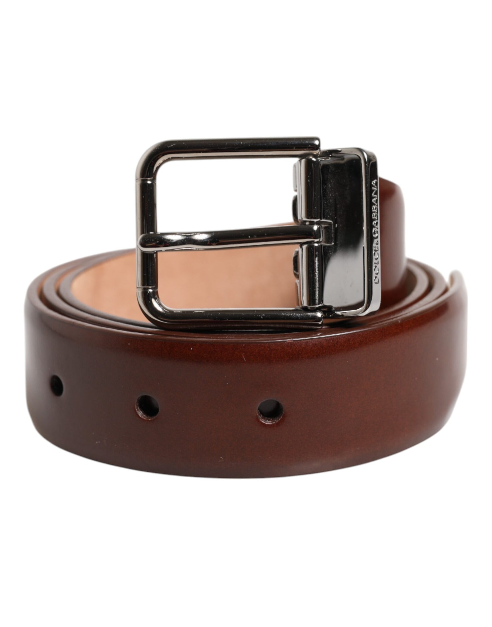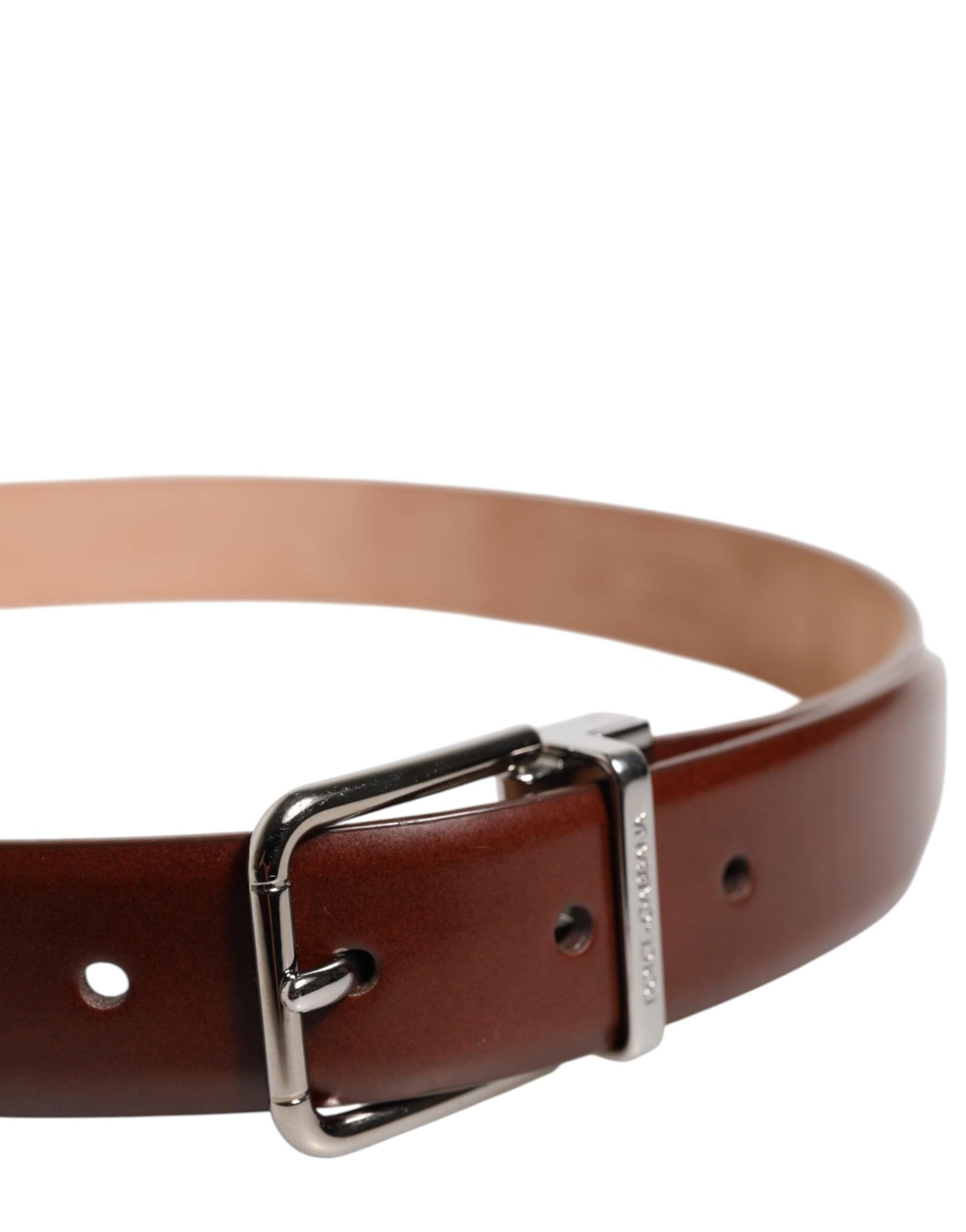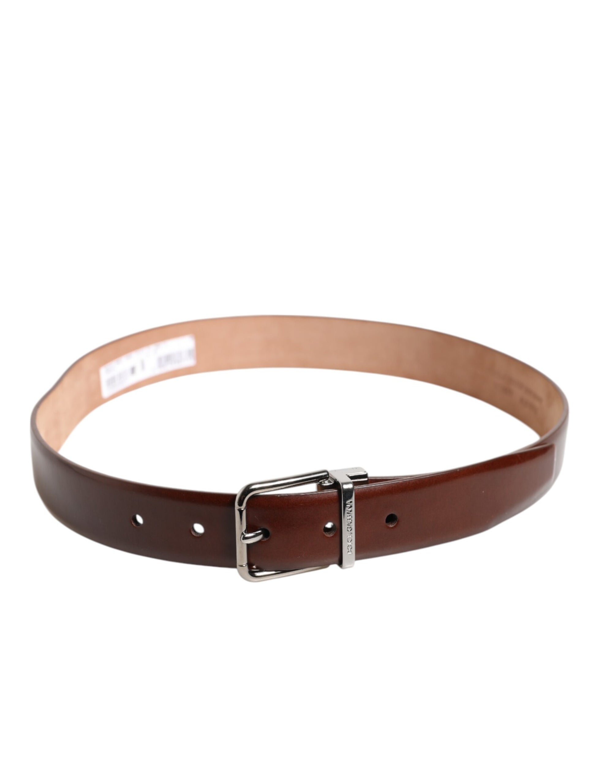 Dolce & Gabbana Brown Classic Calf Leather Silver Buckle Belt