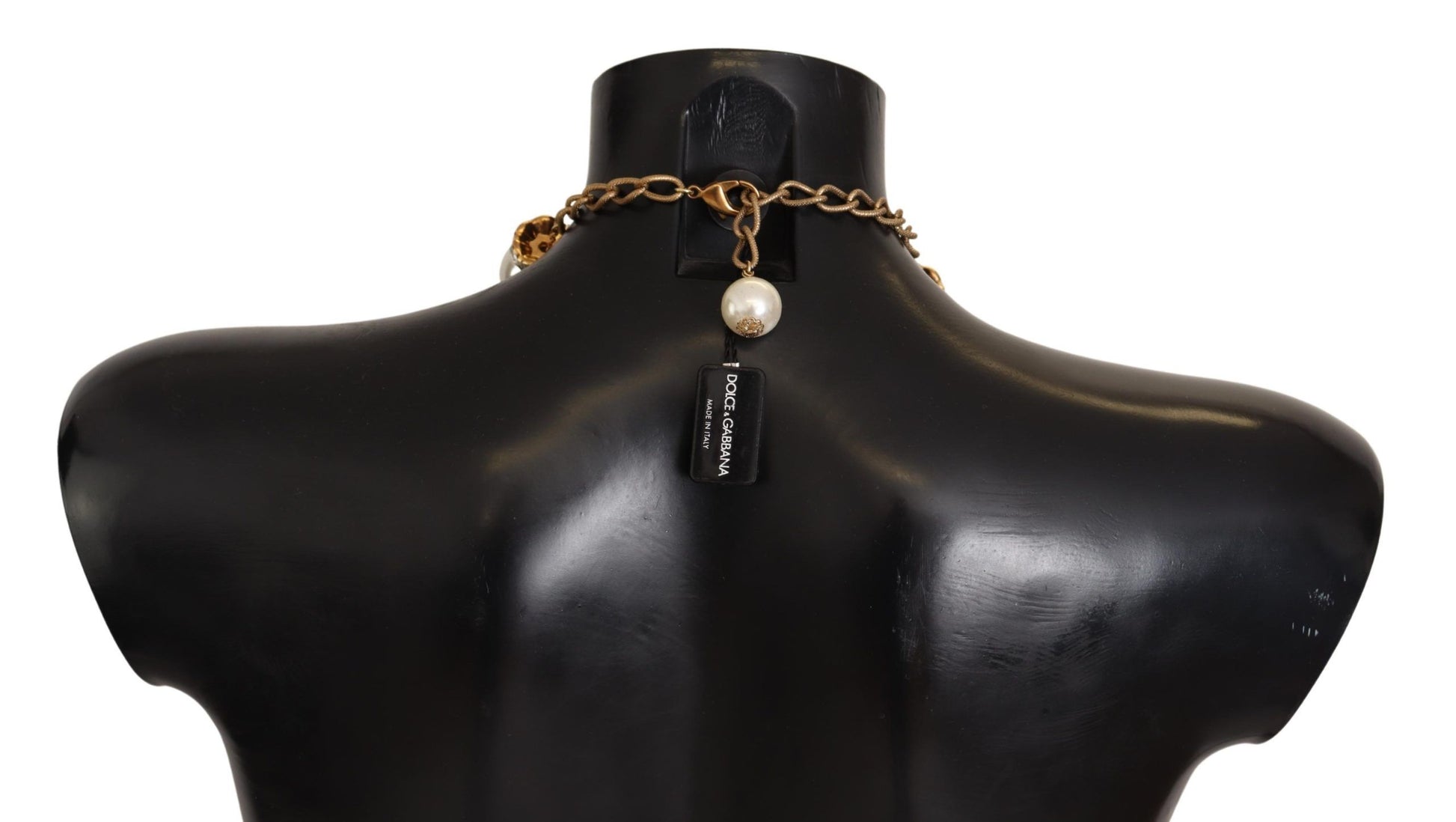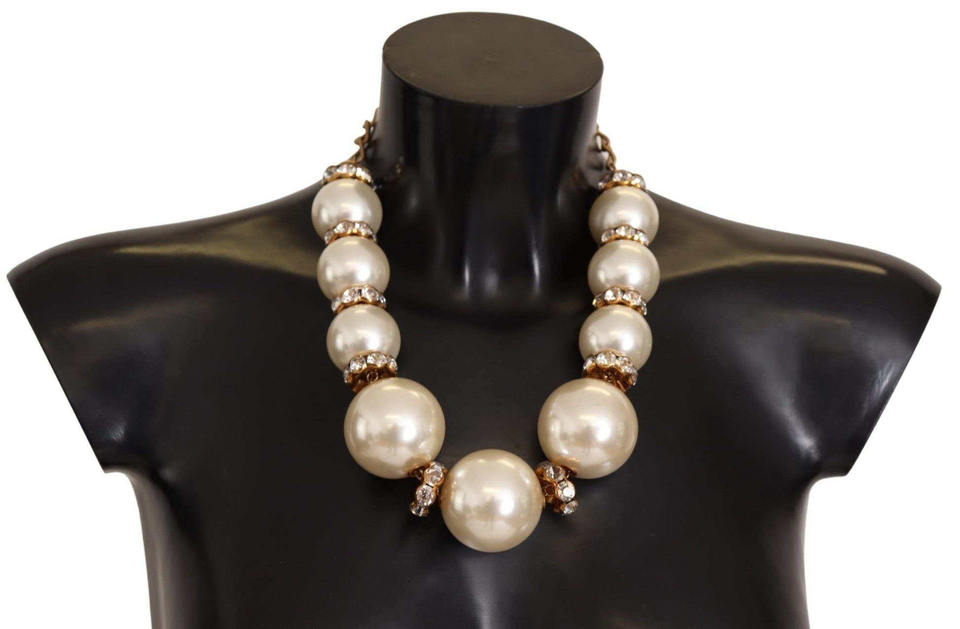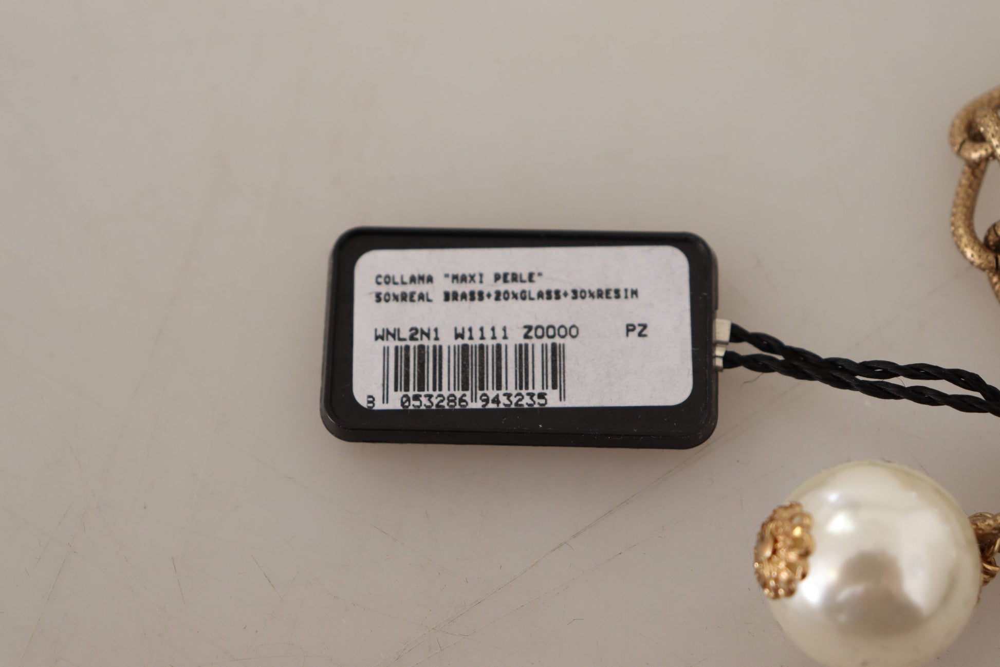Dolce & Gabbana Gold Brass White Maxi Faux Pearl Beads Crystals Necklace