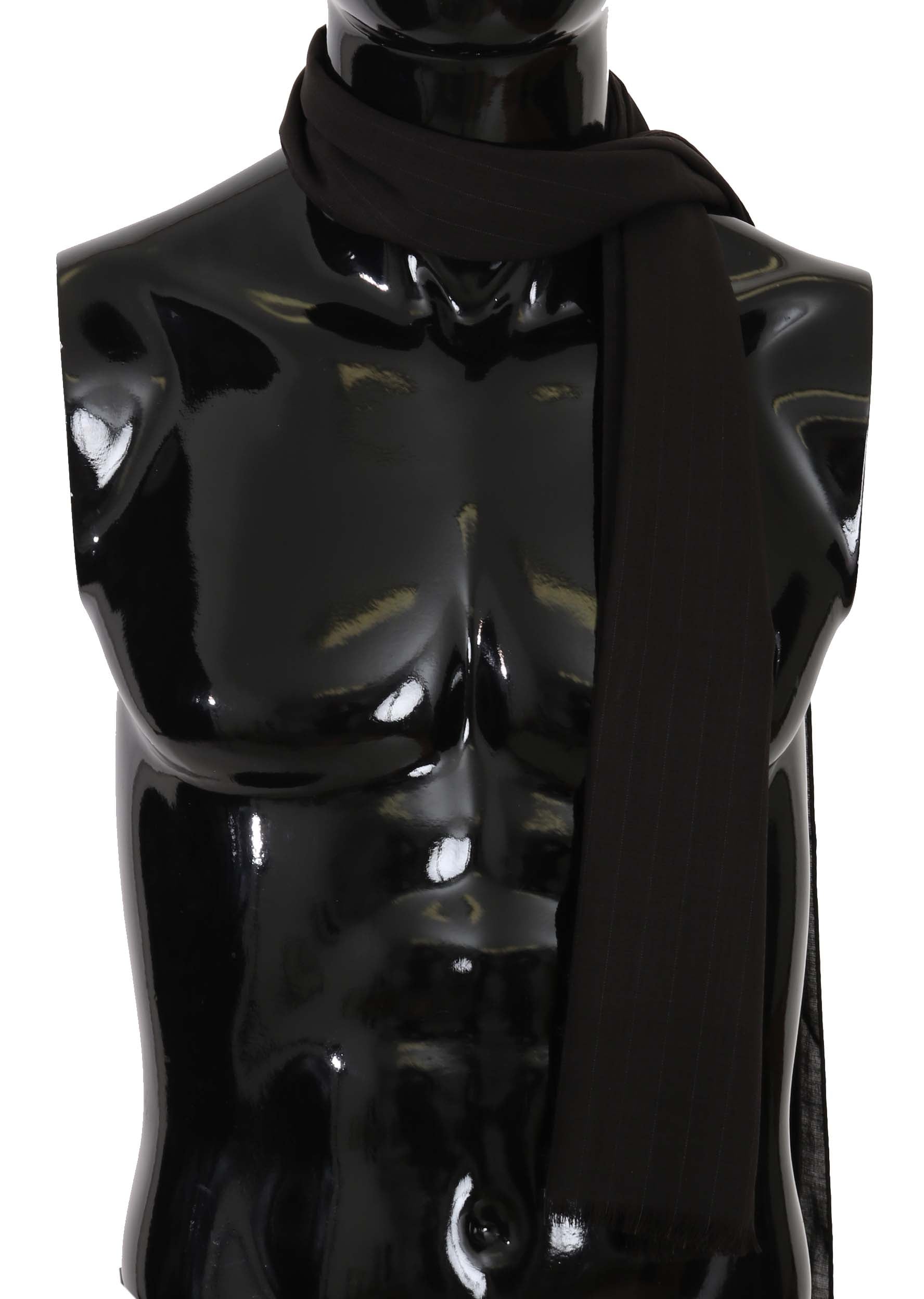 Dolce & Gabbana Brown Virgin Wool Striped Pattern Wrap Scarf