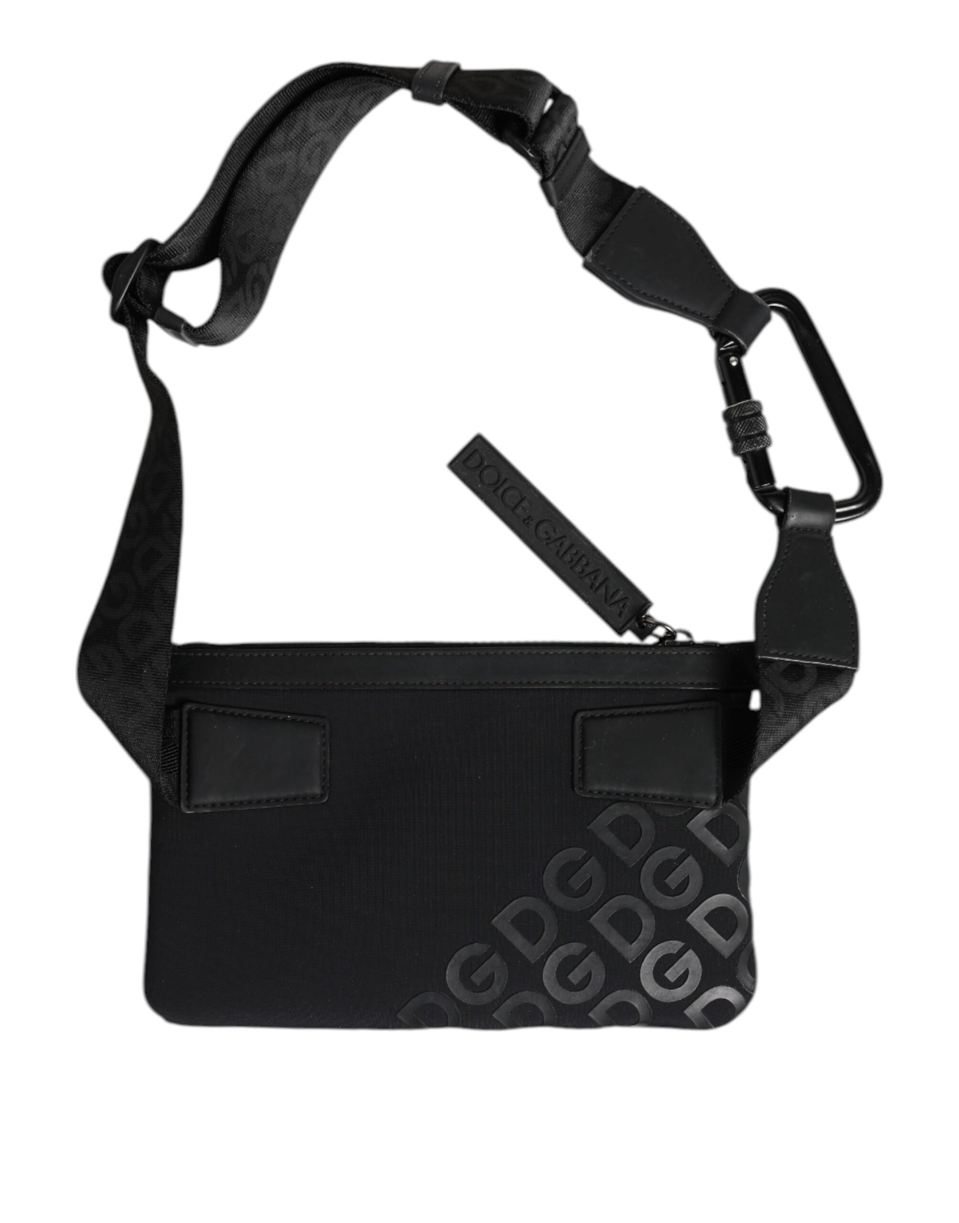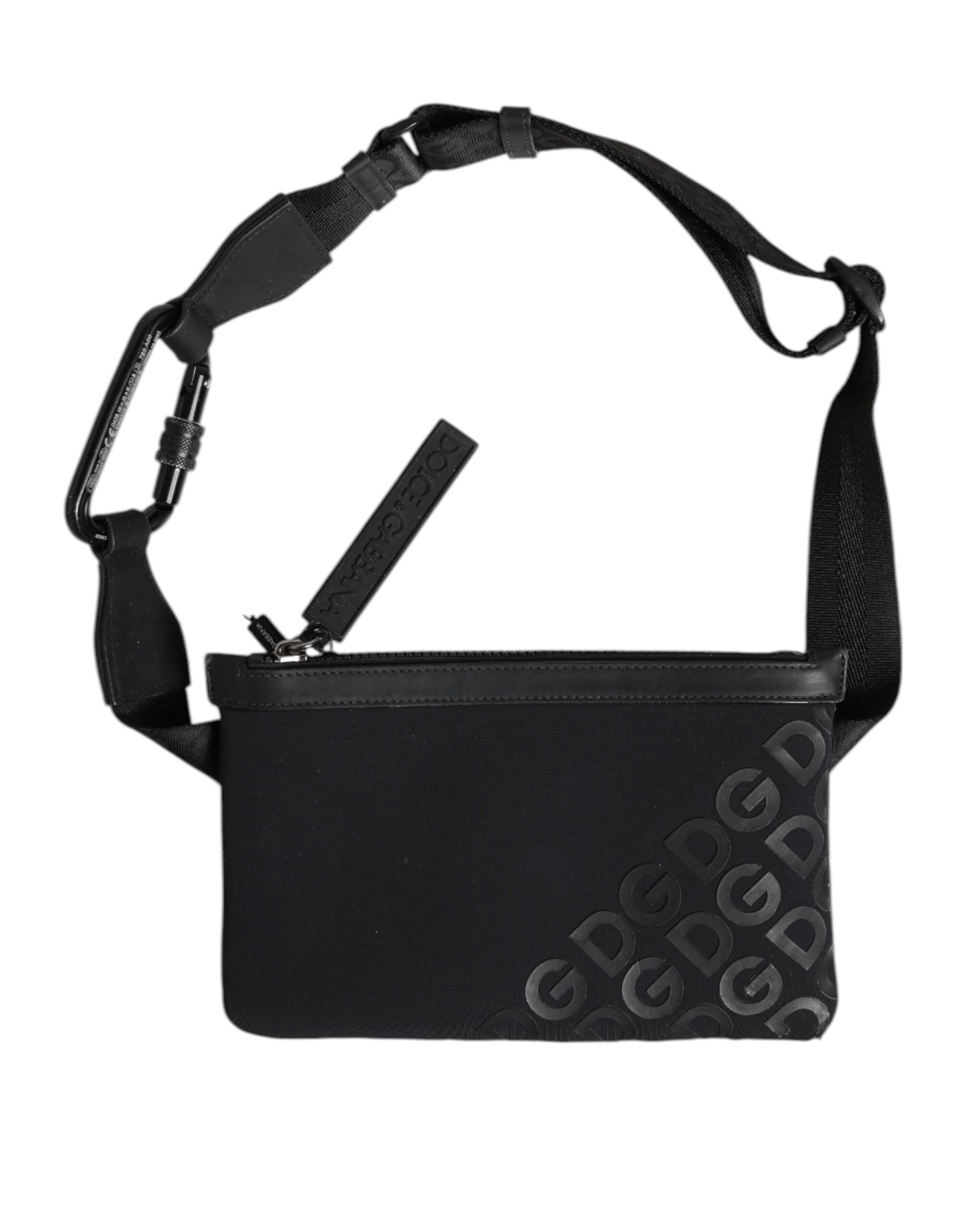 Dolce & Gabbana Black Logo Patch Shoulder Sling Pouch Clutch Bag