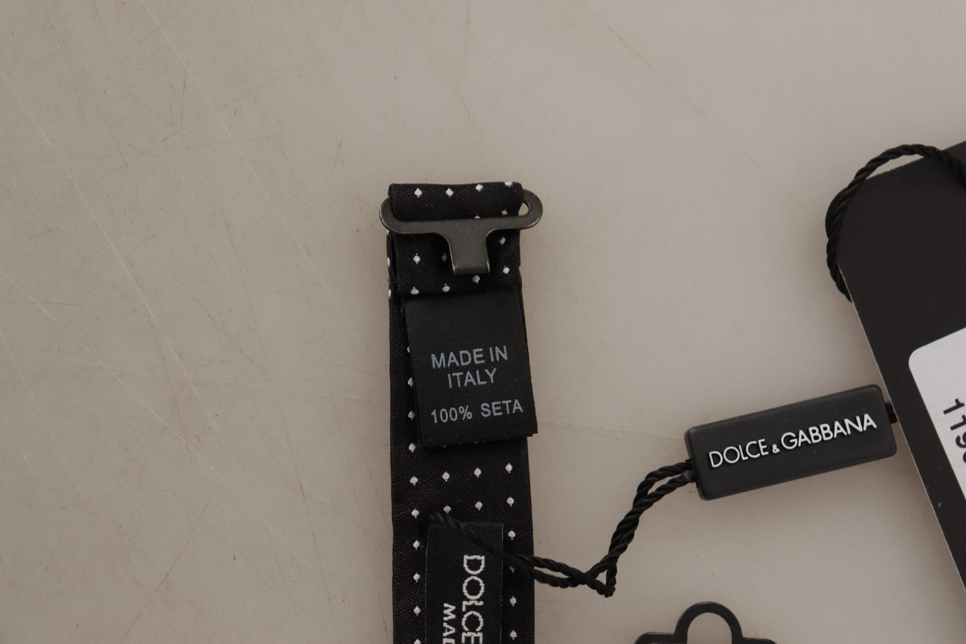 Dolce & Gabbana Black White Polka Dot Adjustable Neck Papillon Bow Tie