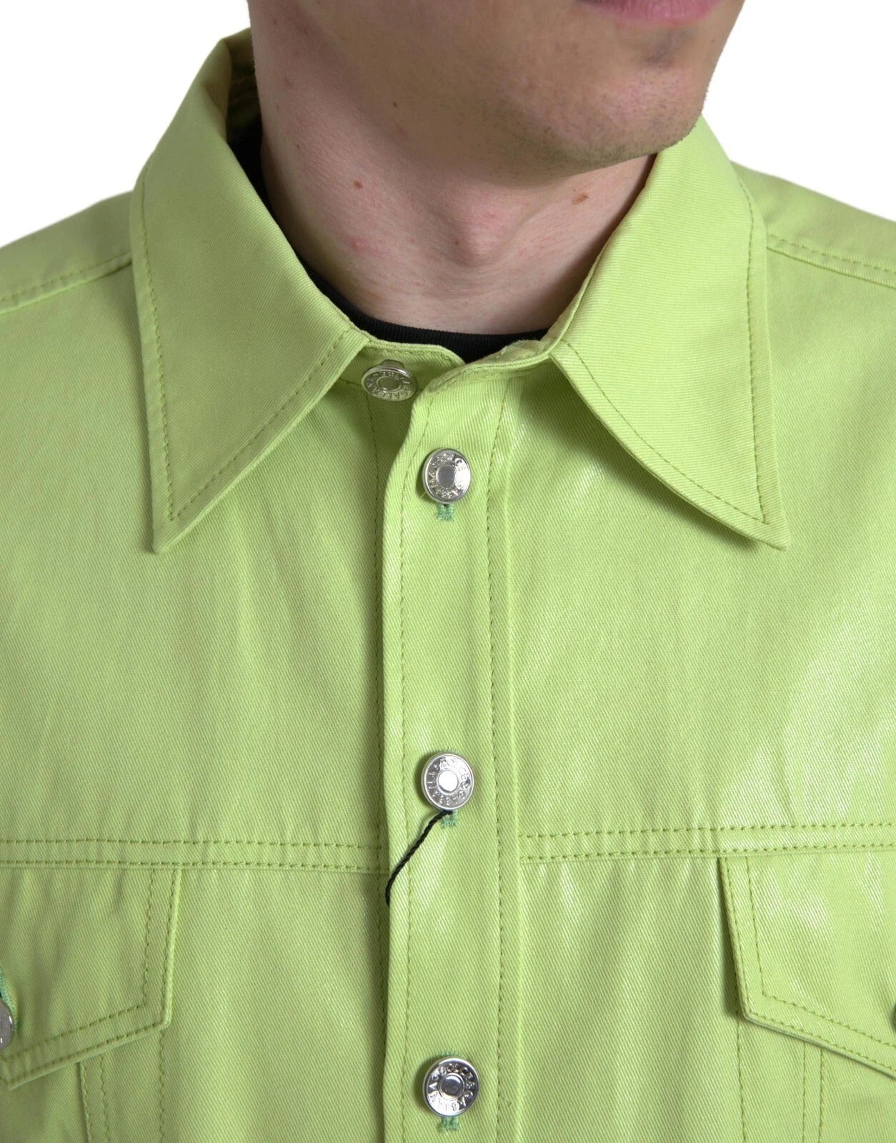 Dolce & Gabbana Green Cotton Collared Casual Button Down Shirt