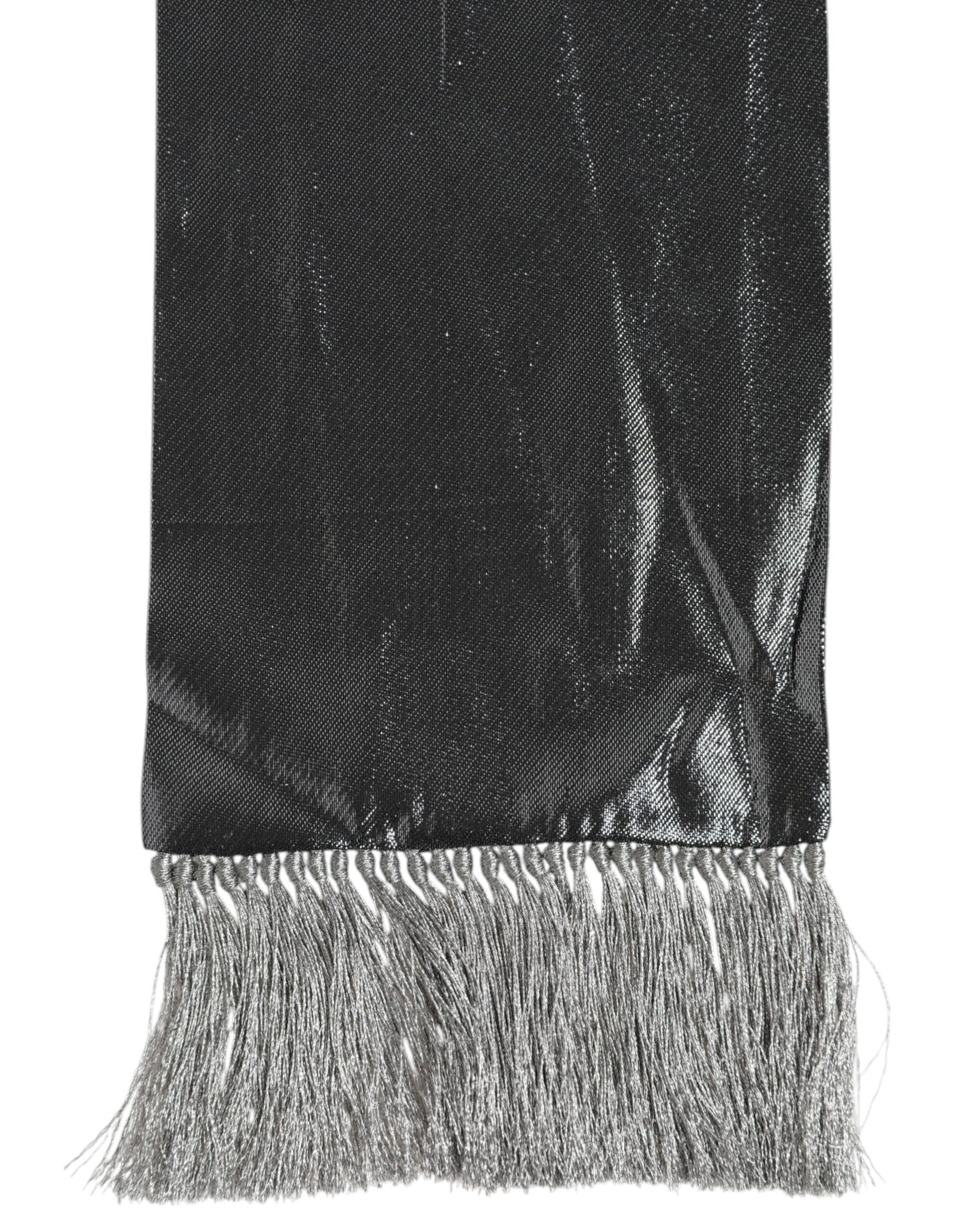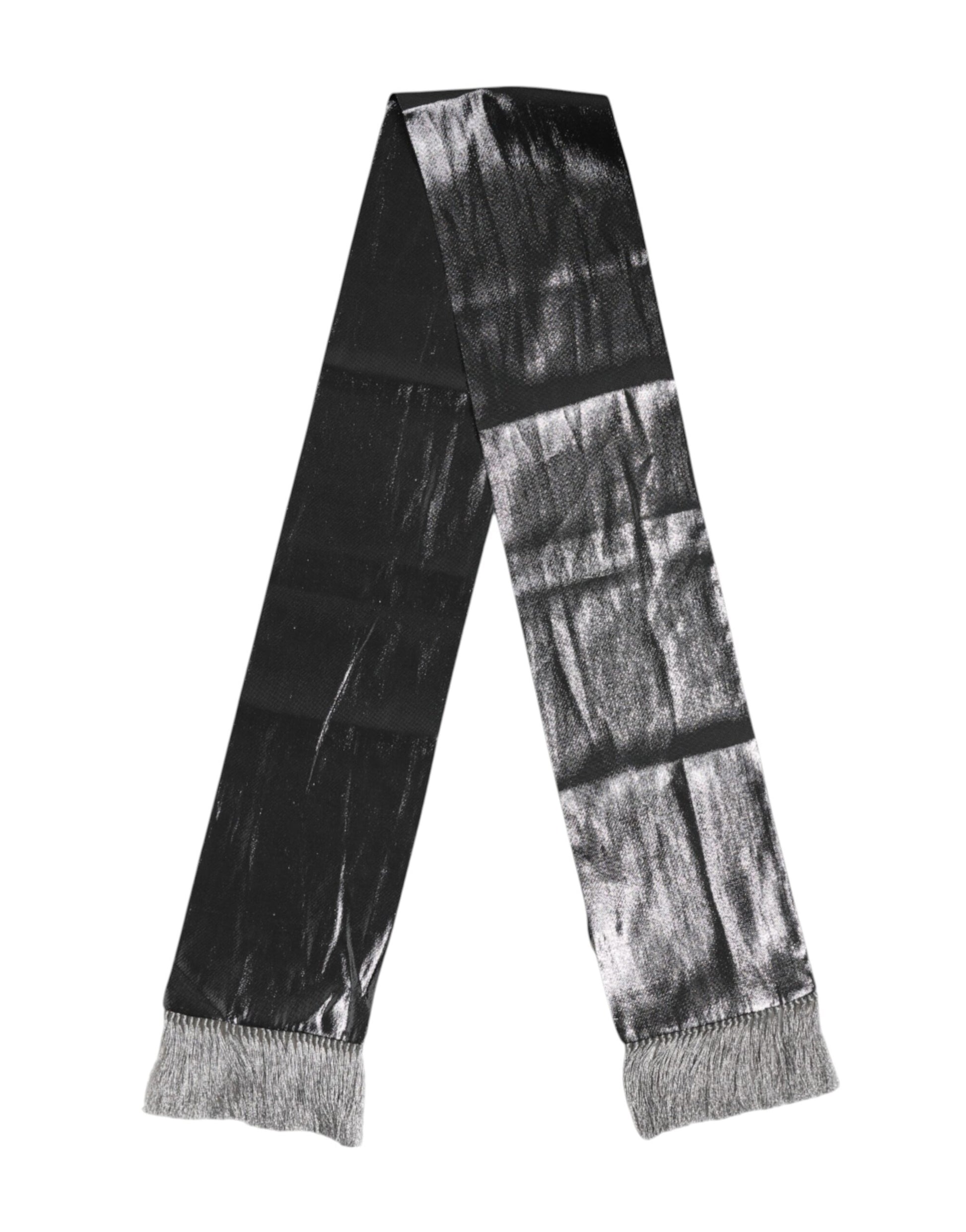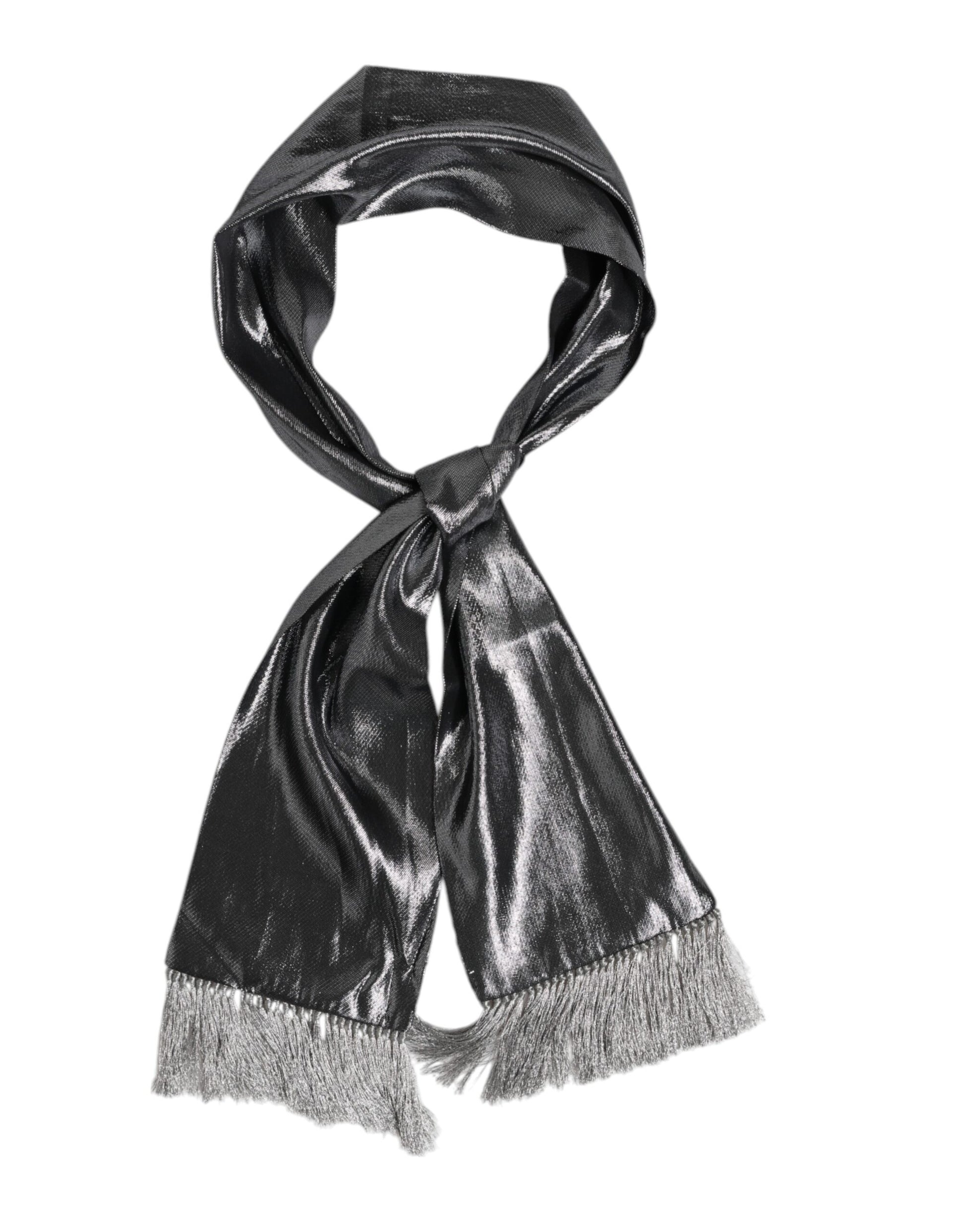 Dolce & Gabbana Metallic Gray Silk Fringes Foulard Scarf
