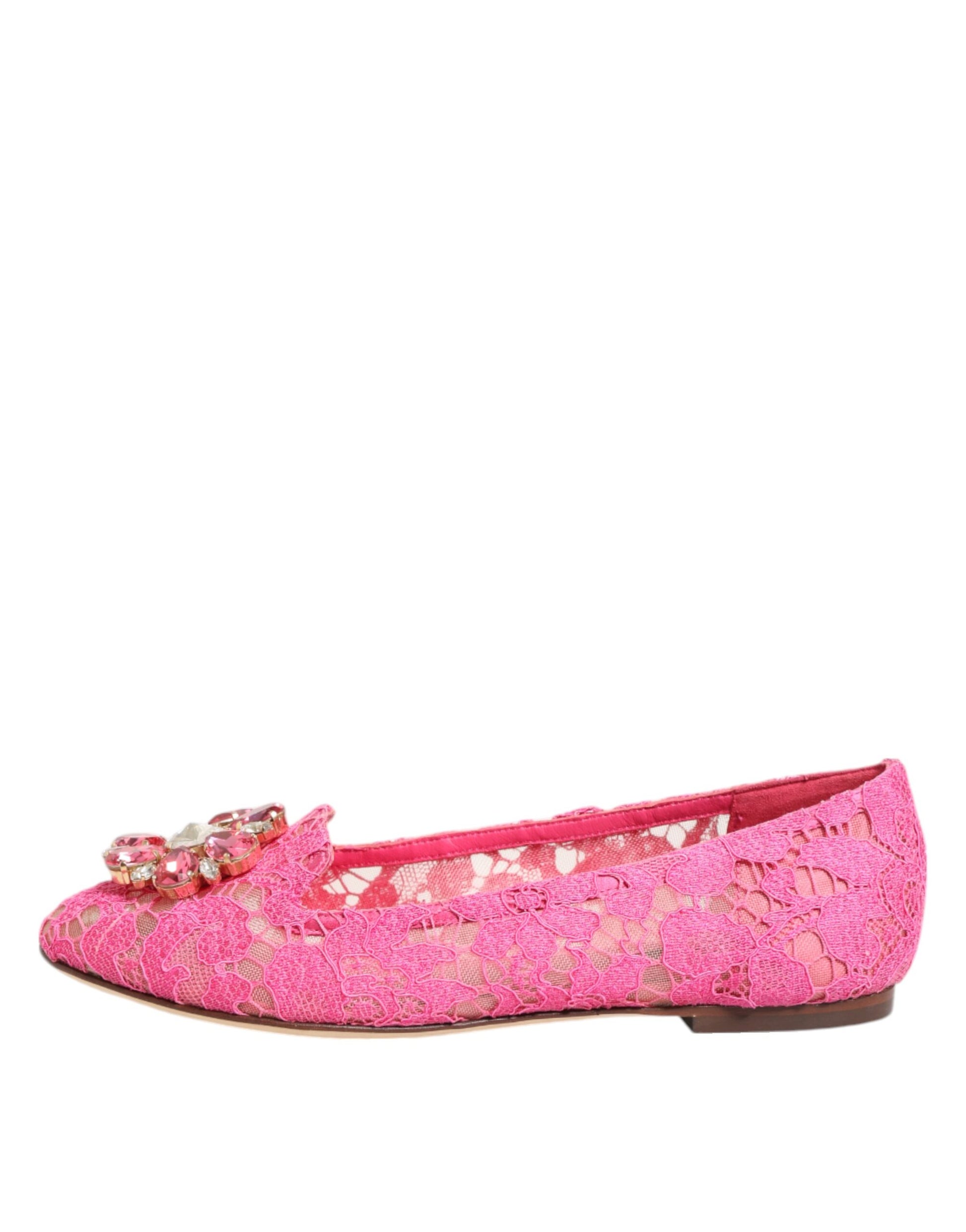 Dolce & Gabbana Pink Taormina Lace Crystals Flats Shoes