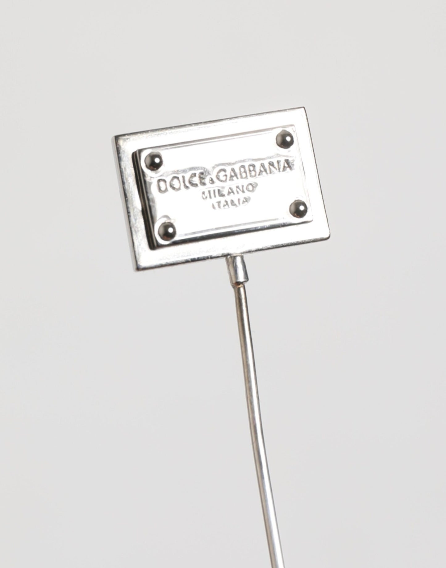 Dolce & Gabbana Silver Tone Logo Plaque Lapel Men Accessory Brooch Pin