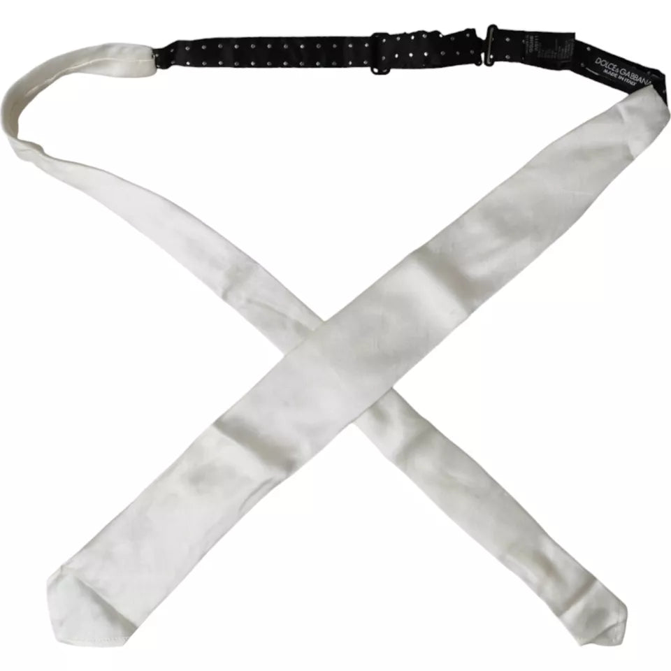 Dolce & Gabbana White 100% Silk Adjustable Necktie Men Bowtie
