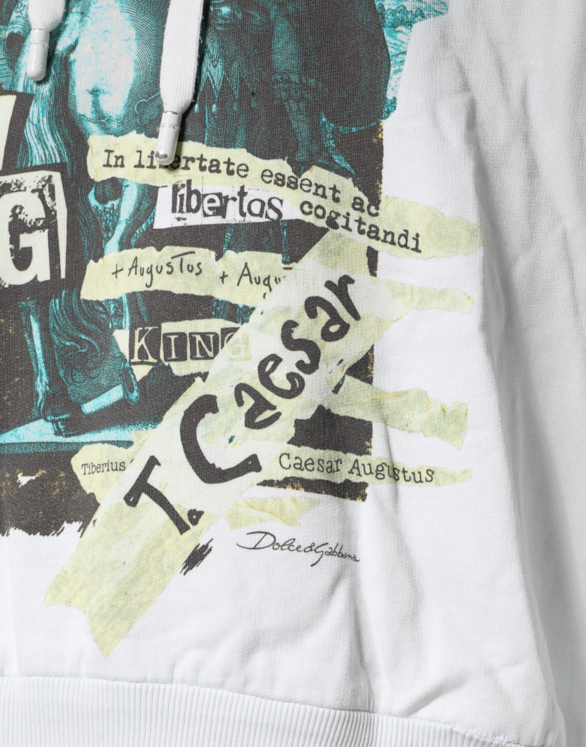 Dolce & Gabbana White Caesar Cotton Hooded Pullover Sweater