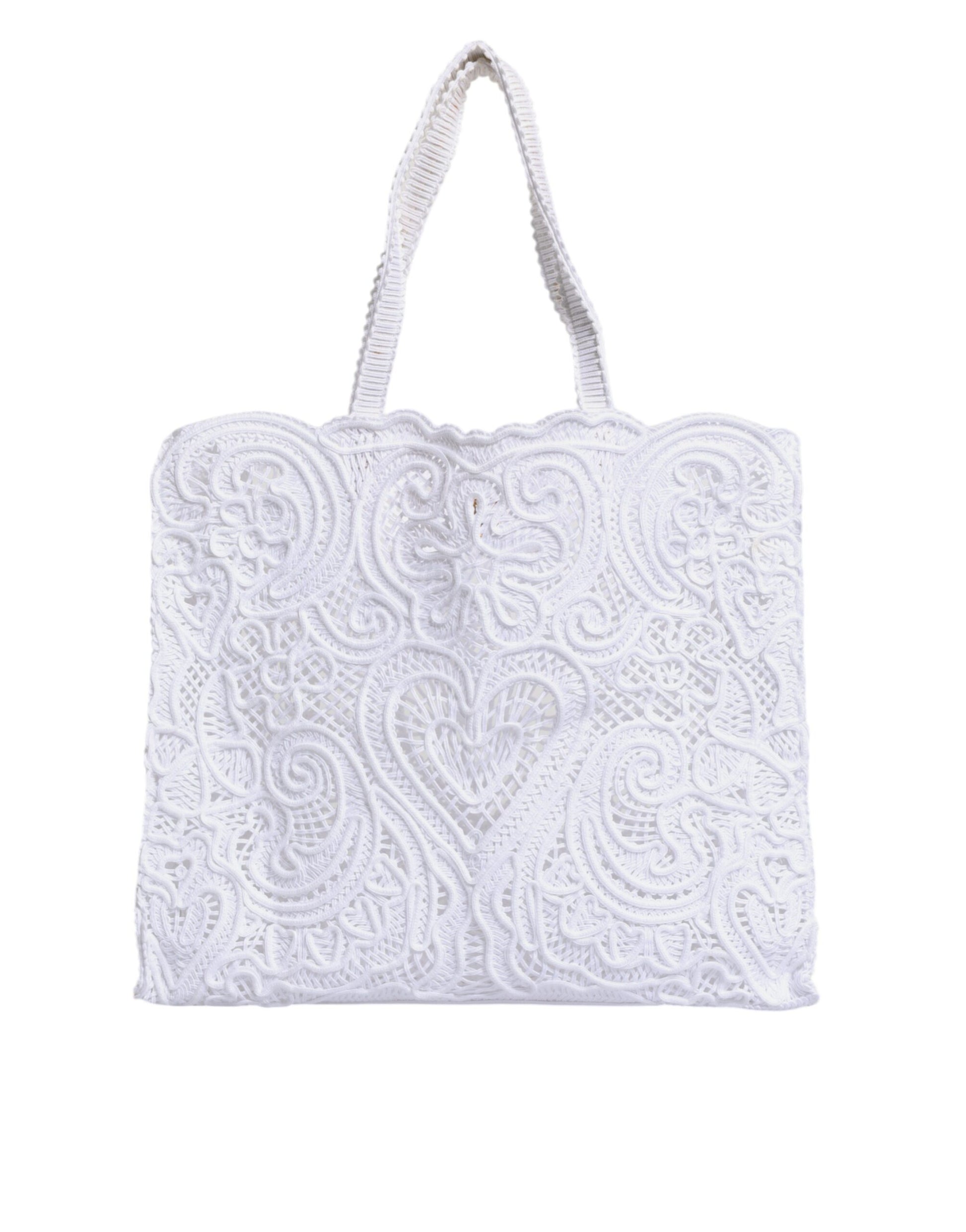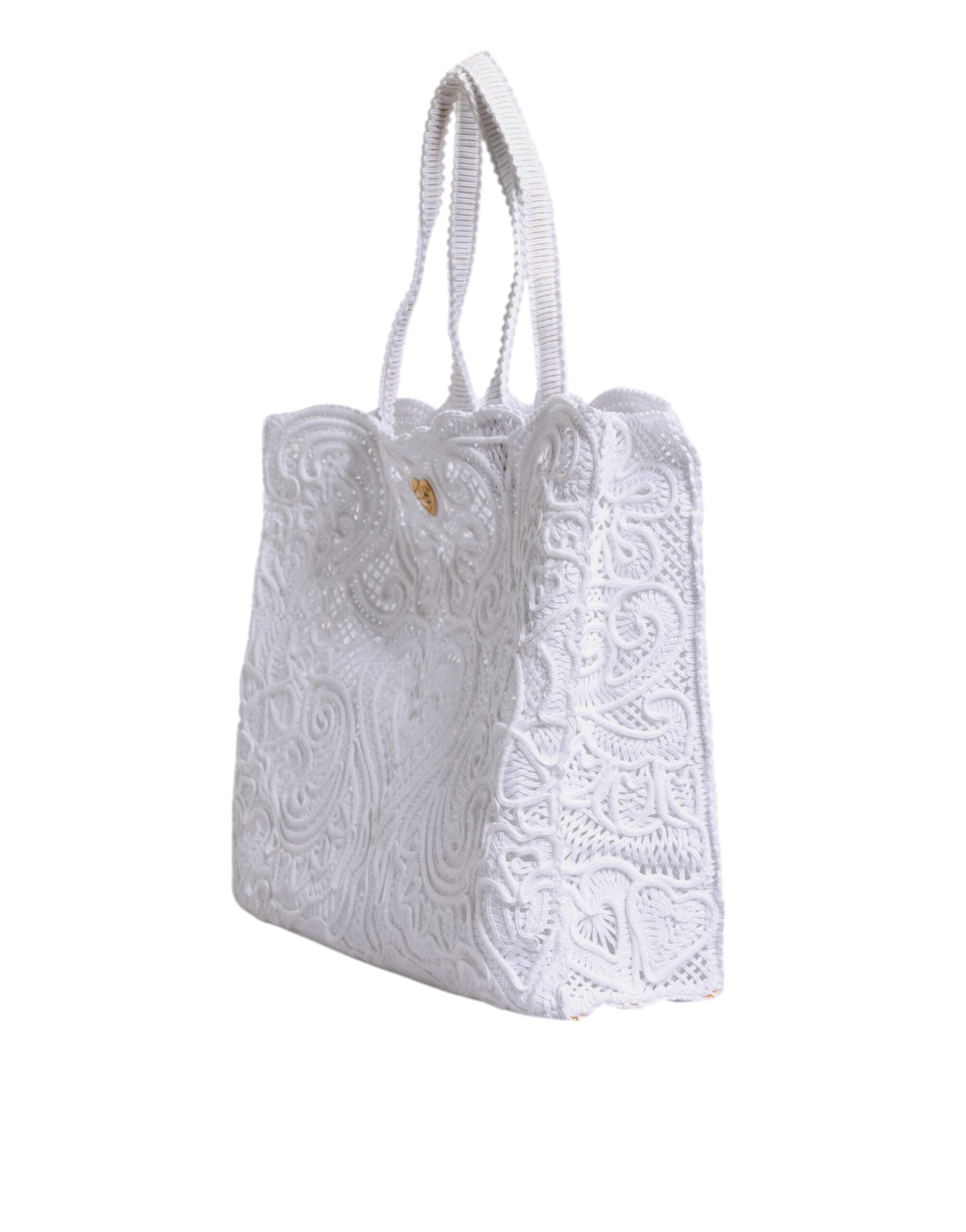 Dolce & Gabbana White Cordonetto Lace Beatrice Shopping Tote Bag