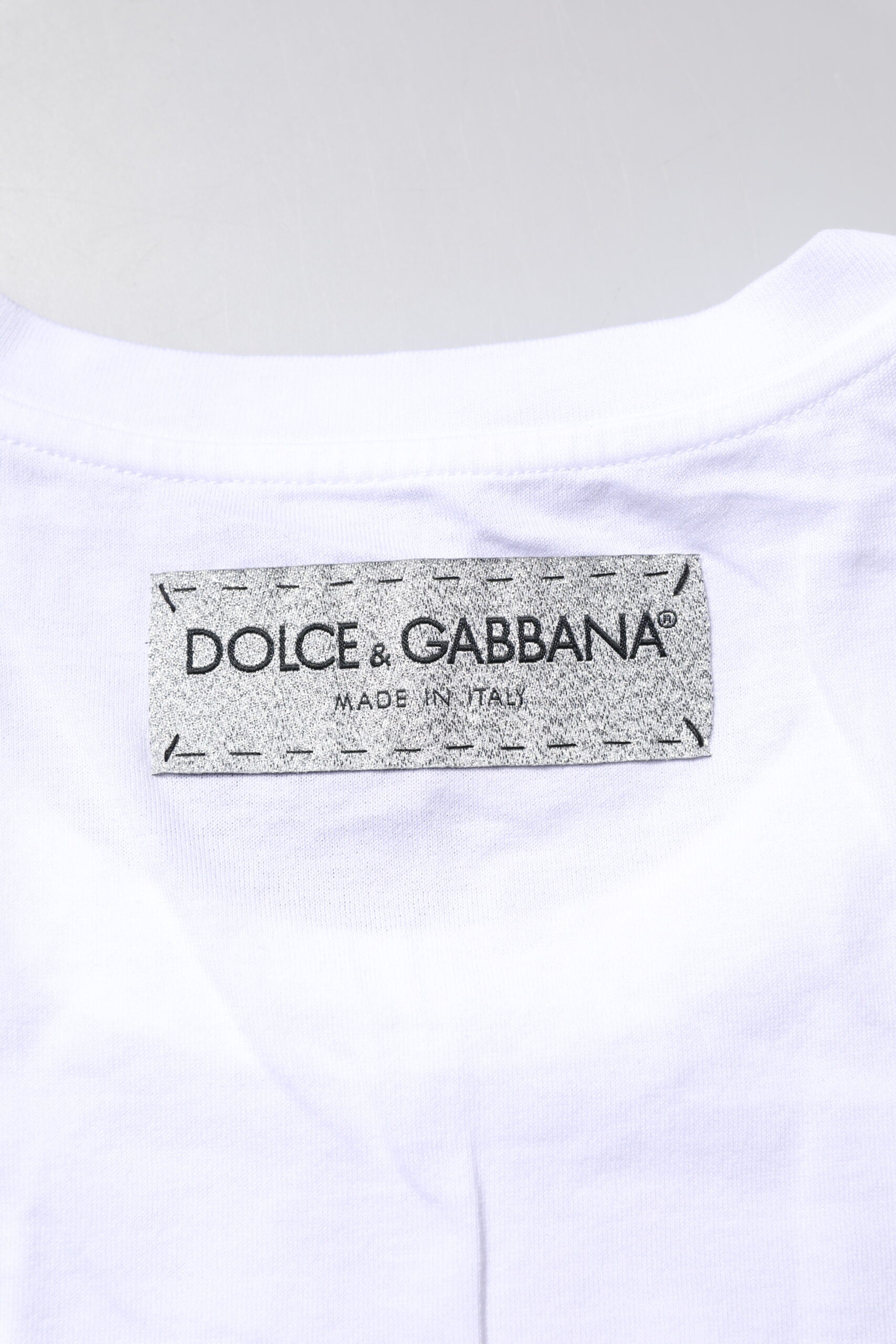 Dolce & Gabbana White Cotton Printed Round Neck Top T-shirt