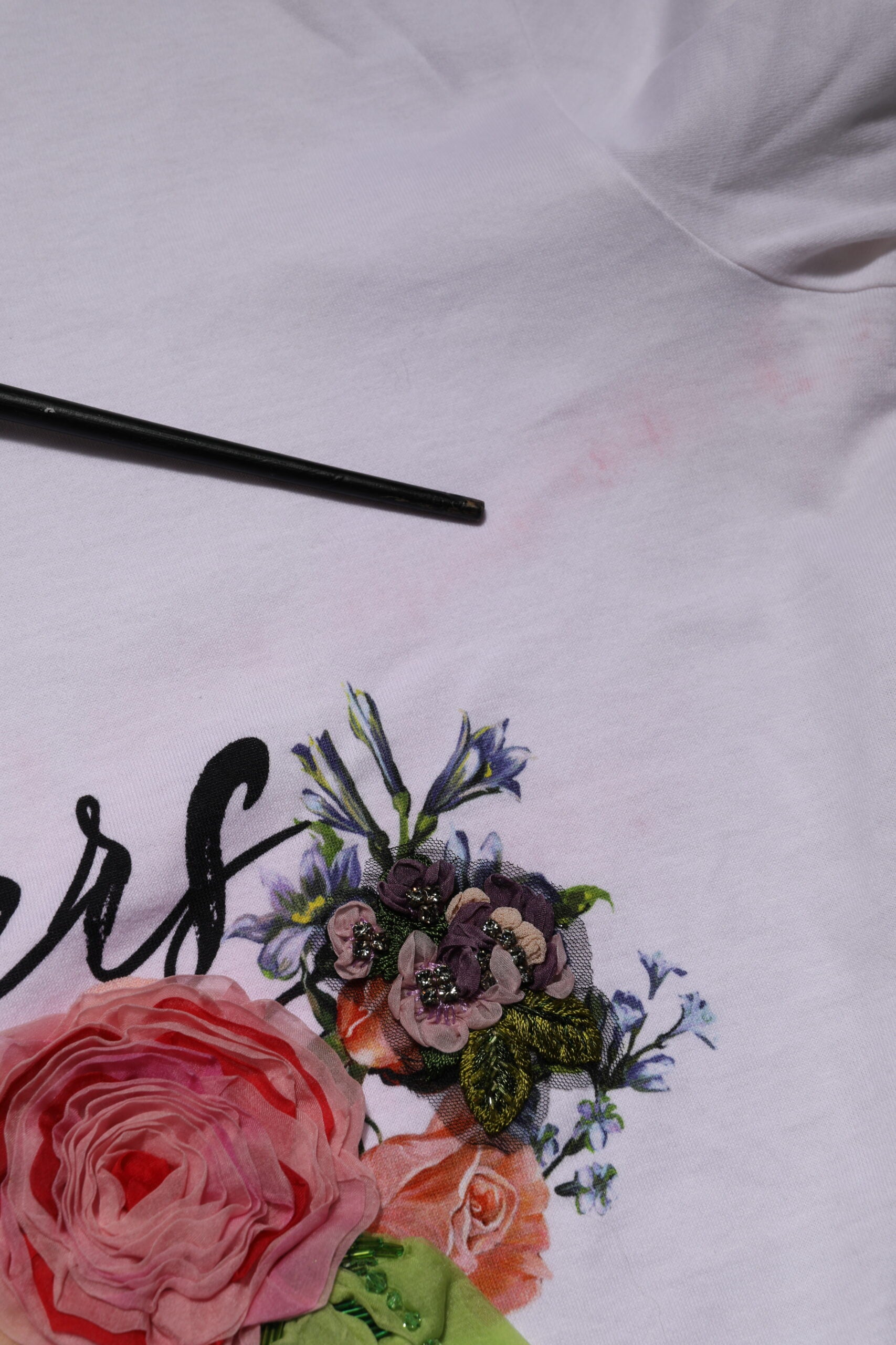 Dolce & Gabbana White DG Floral Embellishment Top T-shirt