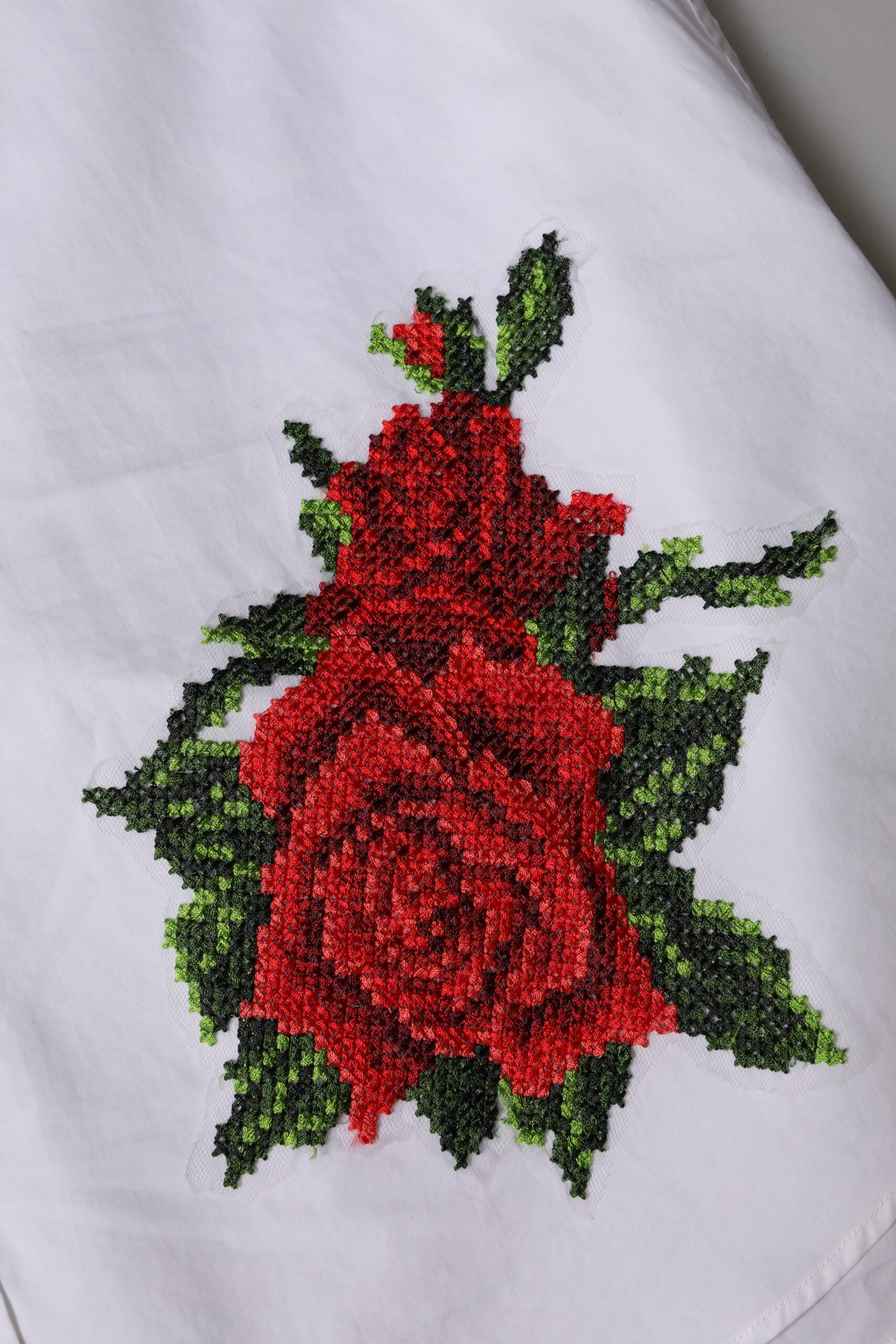 Dolce & Gabbana White Floral Cotton Collared Shirt Top