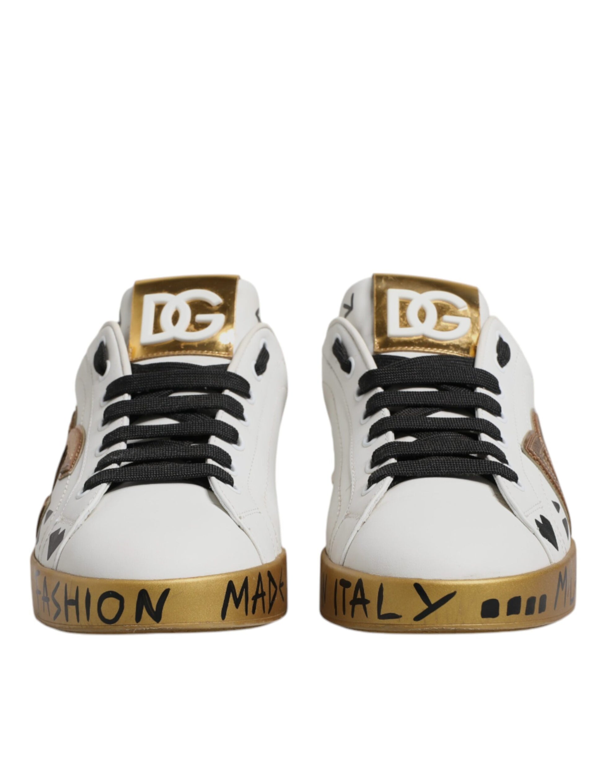 Dolce & Gabbana White Gold Crystal Logo Portofino Sneakers Shoes