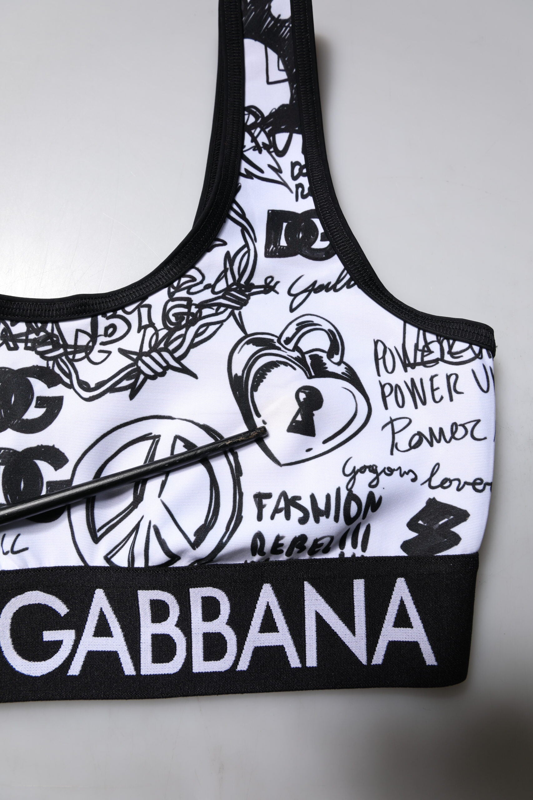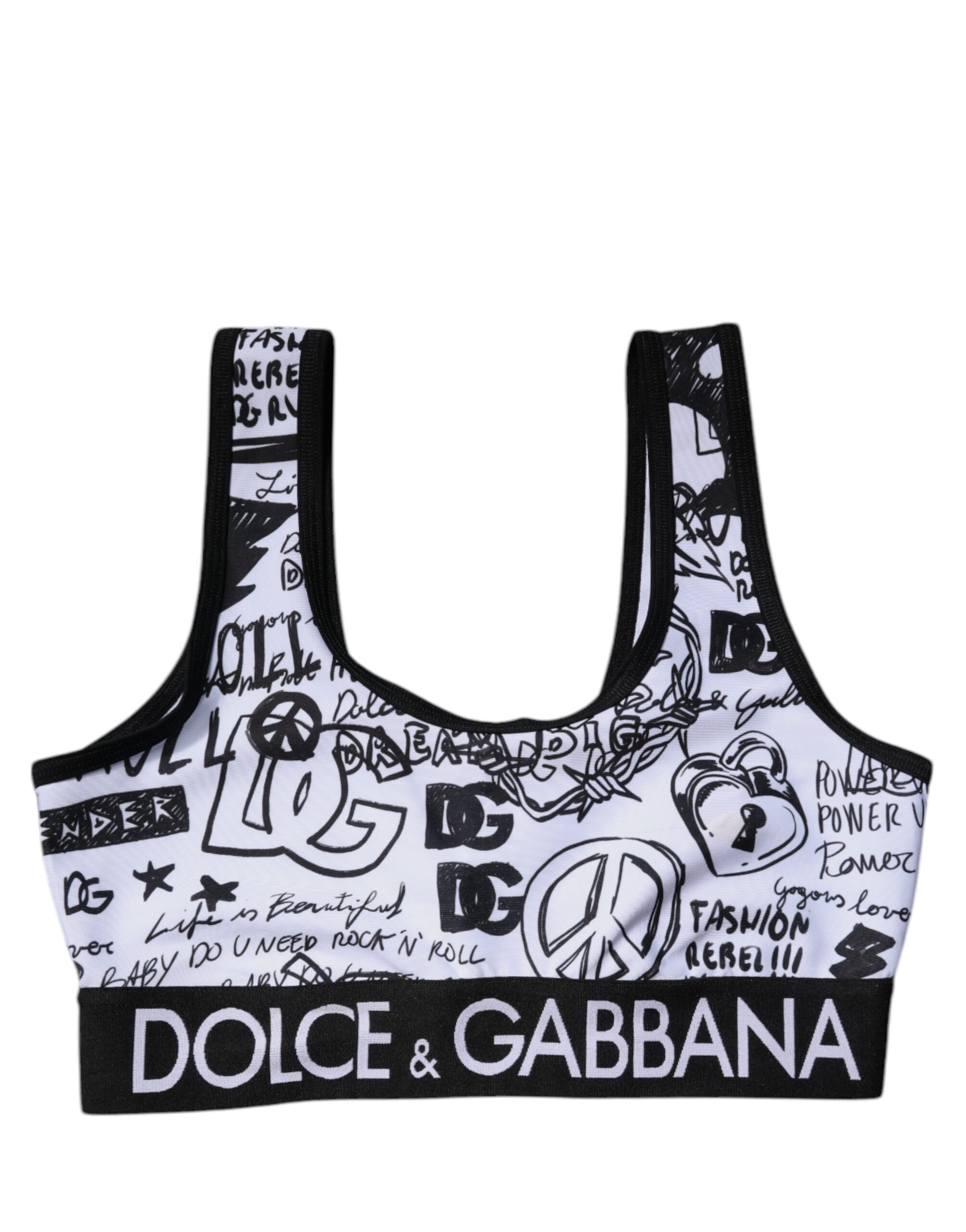 Dolce & Gabbana White Graffiti Print Logo Band Sports Bra Top