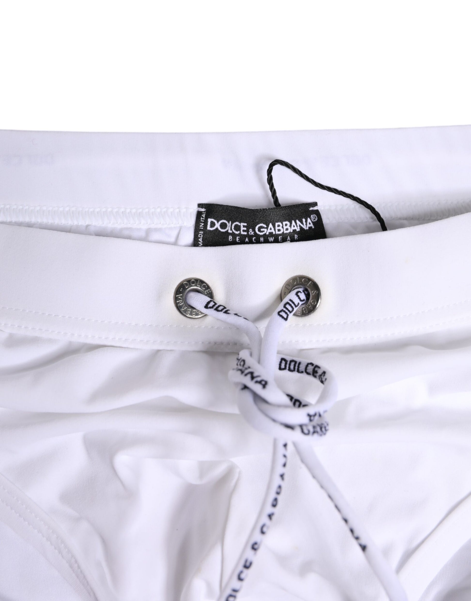 Dolce & Gabbana White Logo Drawstring Beachwear Brief Swimwear