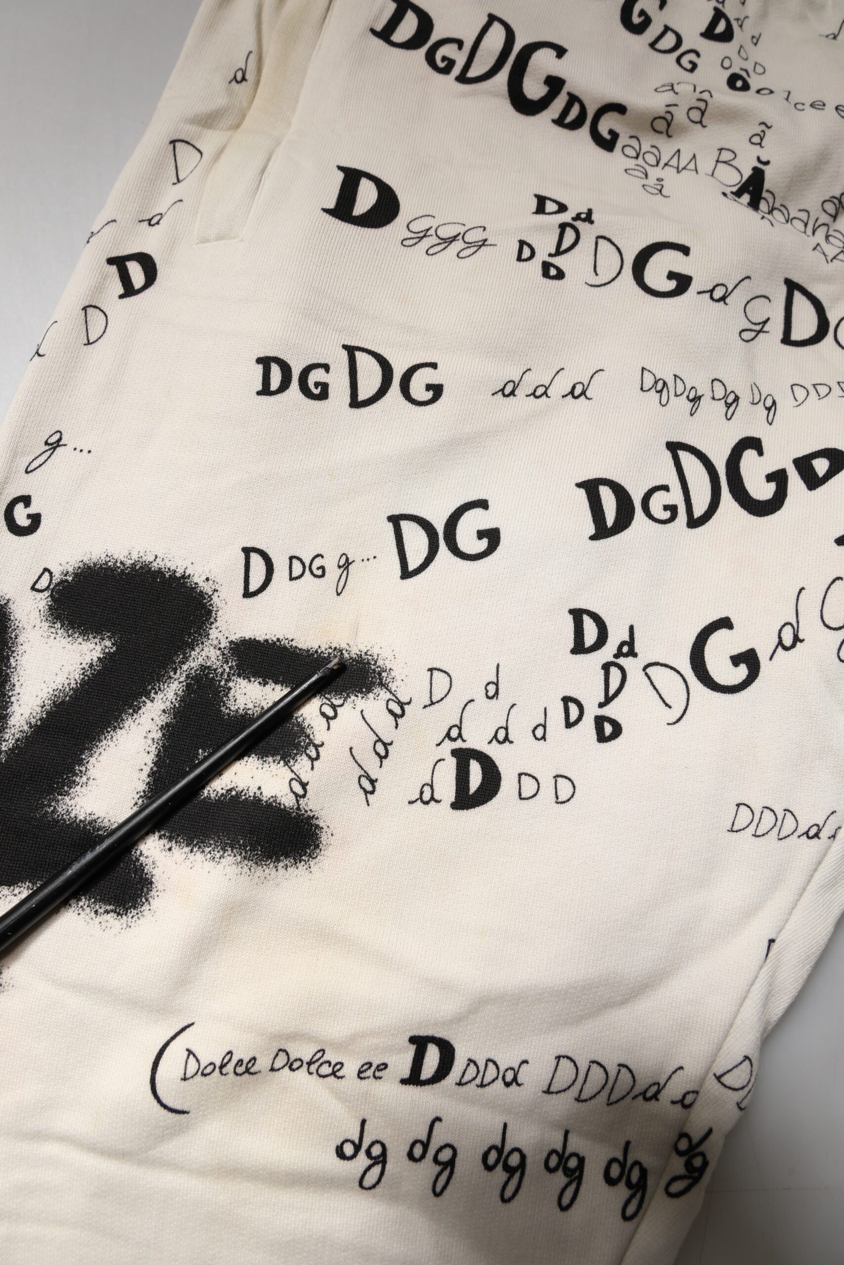 Dolce & Gabbana White Logo Print Men Skinny Sweatpants Pants