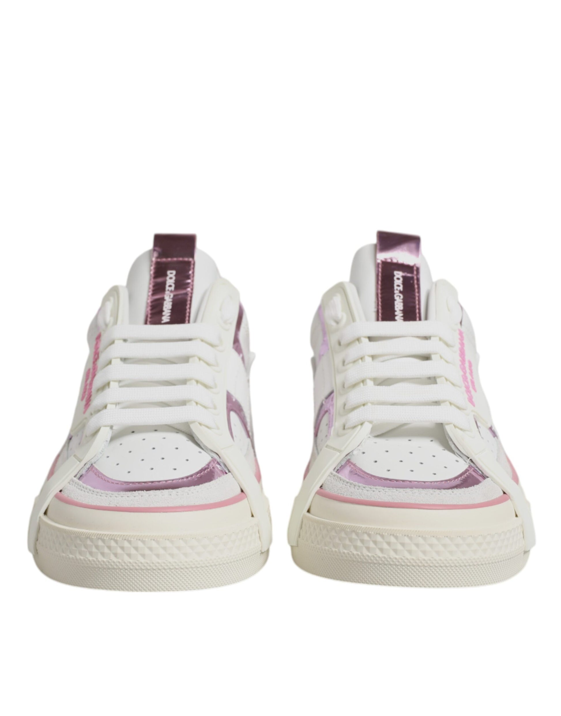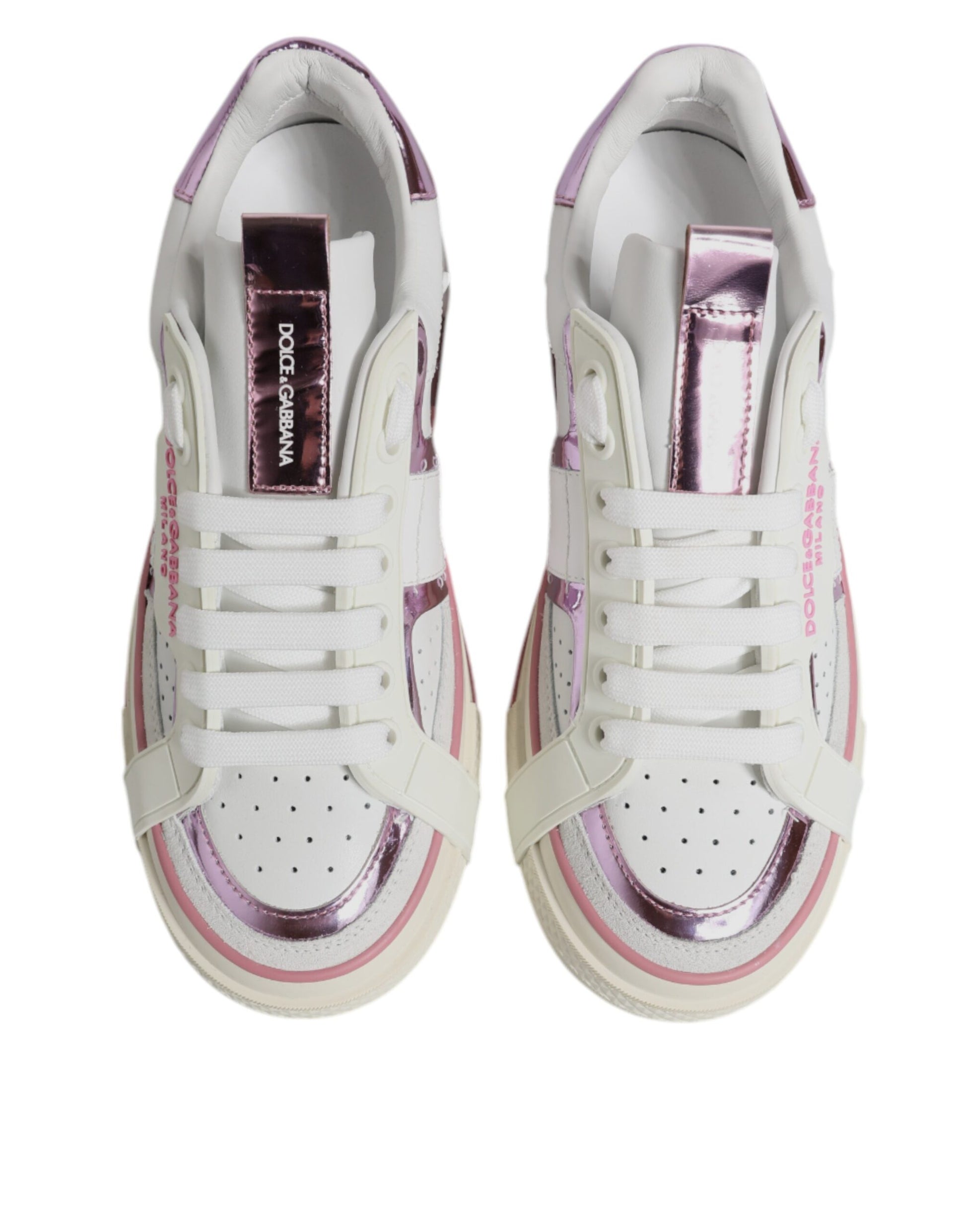 Dolce & Gabbana White Pink Leather Low Top Sneakers Shoes