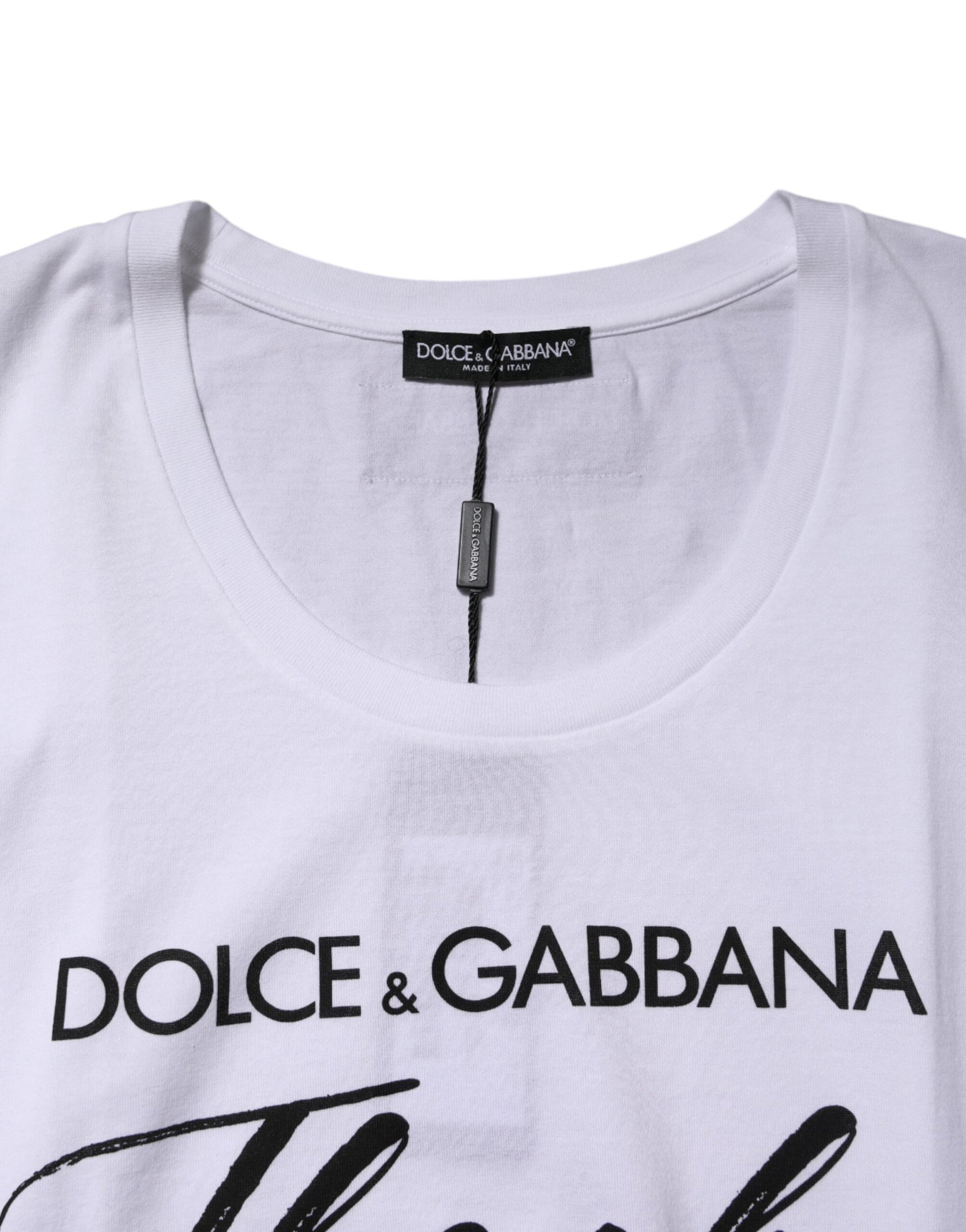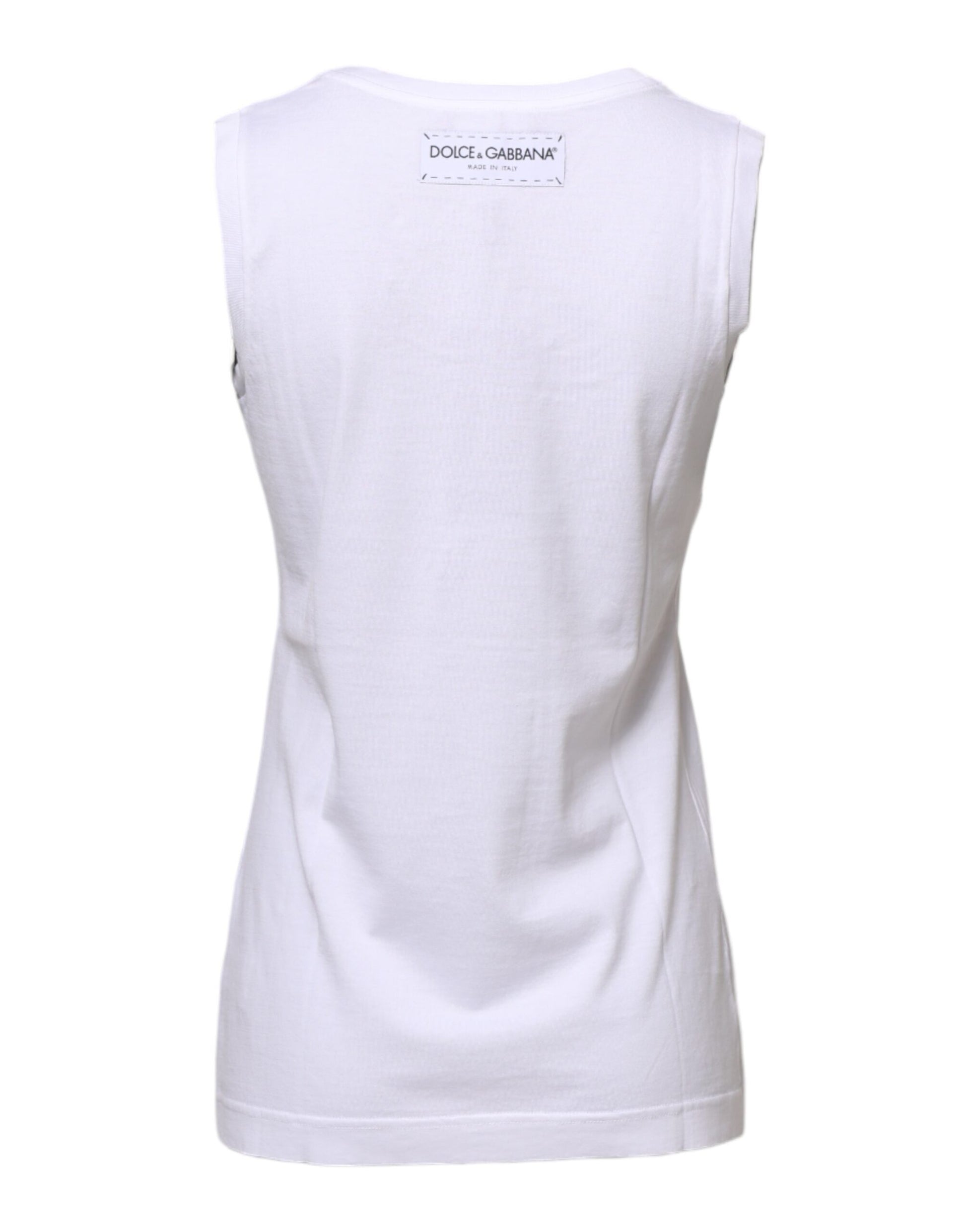 Dolce & Gabbana White Printed Cotton Sleeveless Tank T-shirt