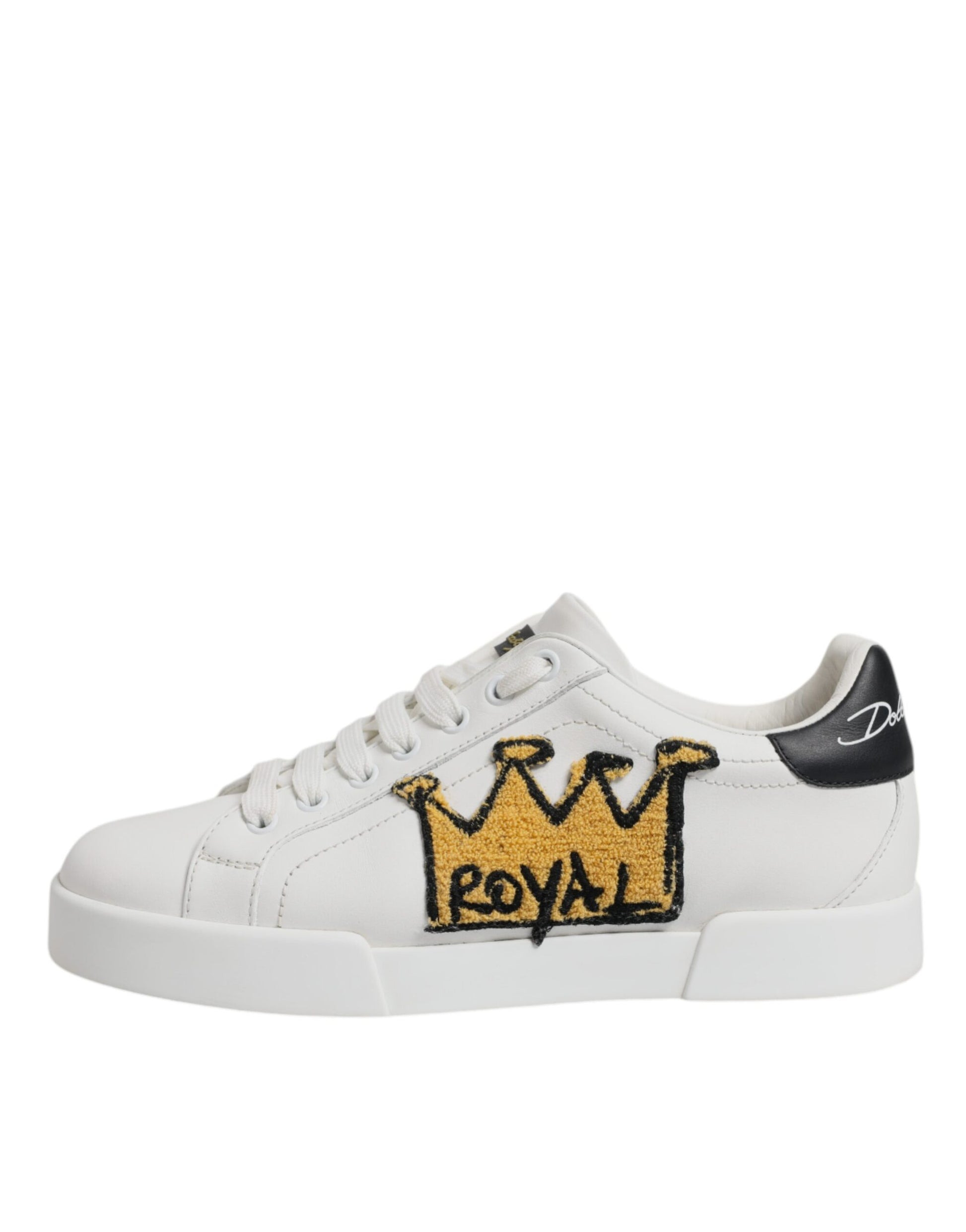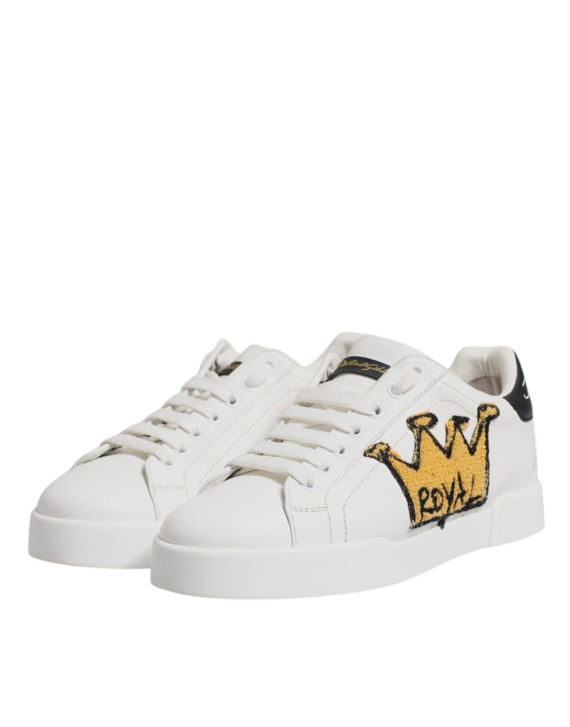 Dolce & Gabbana White Royal Crown Low Top Sneakers Shoes