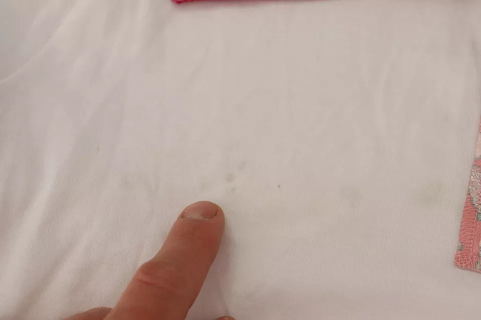 This item is preowned, it has a dirt mark over the blouse (see pictures for details).