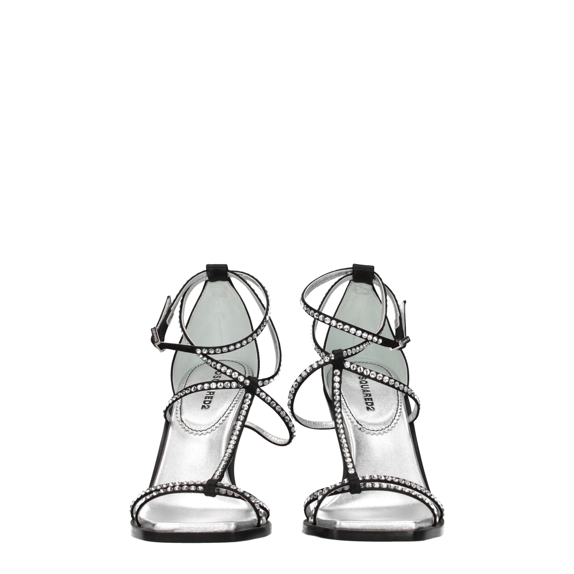 The product with MPN HSW0206001039412124 and code F77396 satin in black is a sandals designed by Dsquared2. It has features like rhinestone.