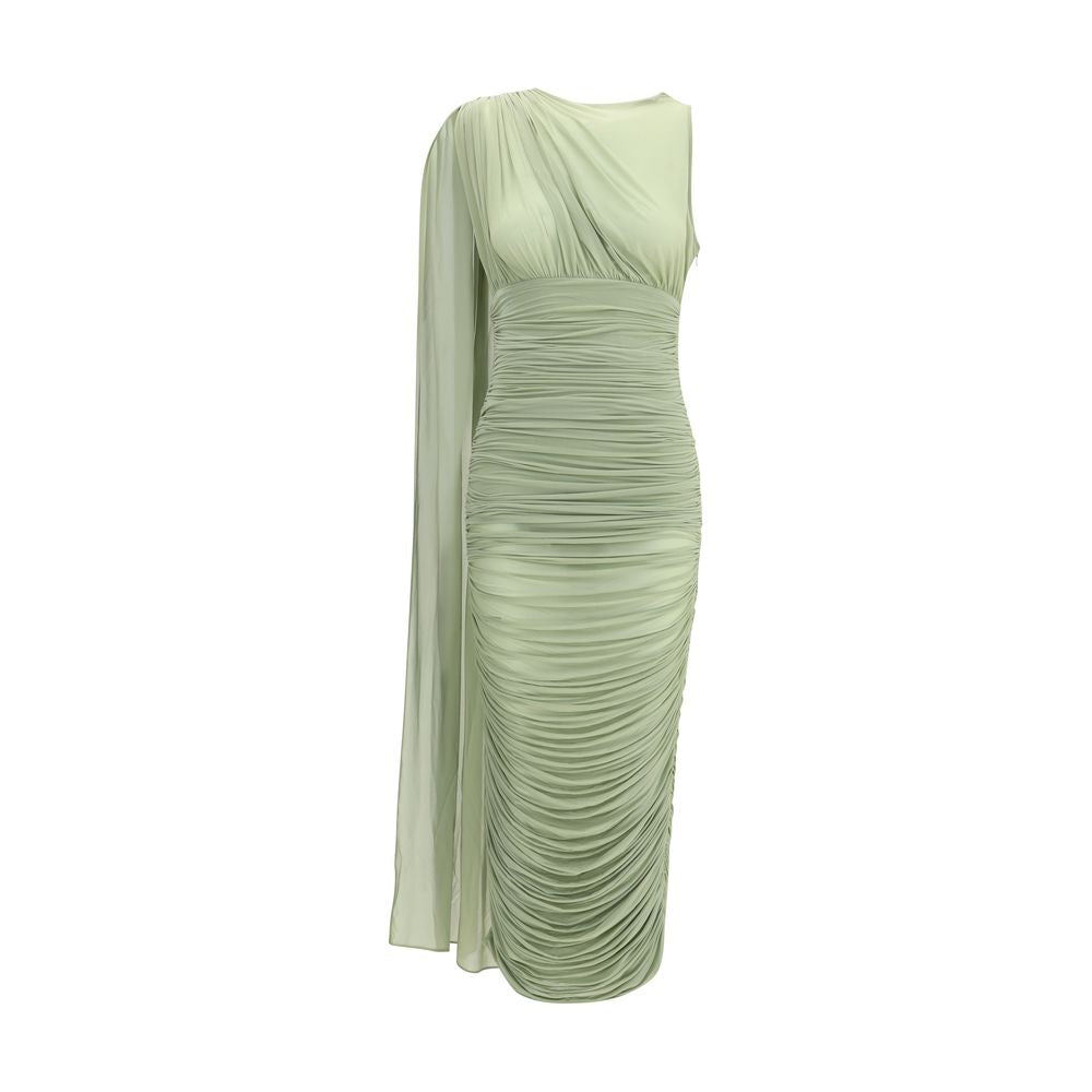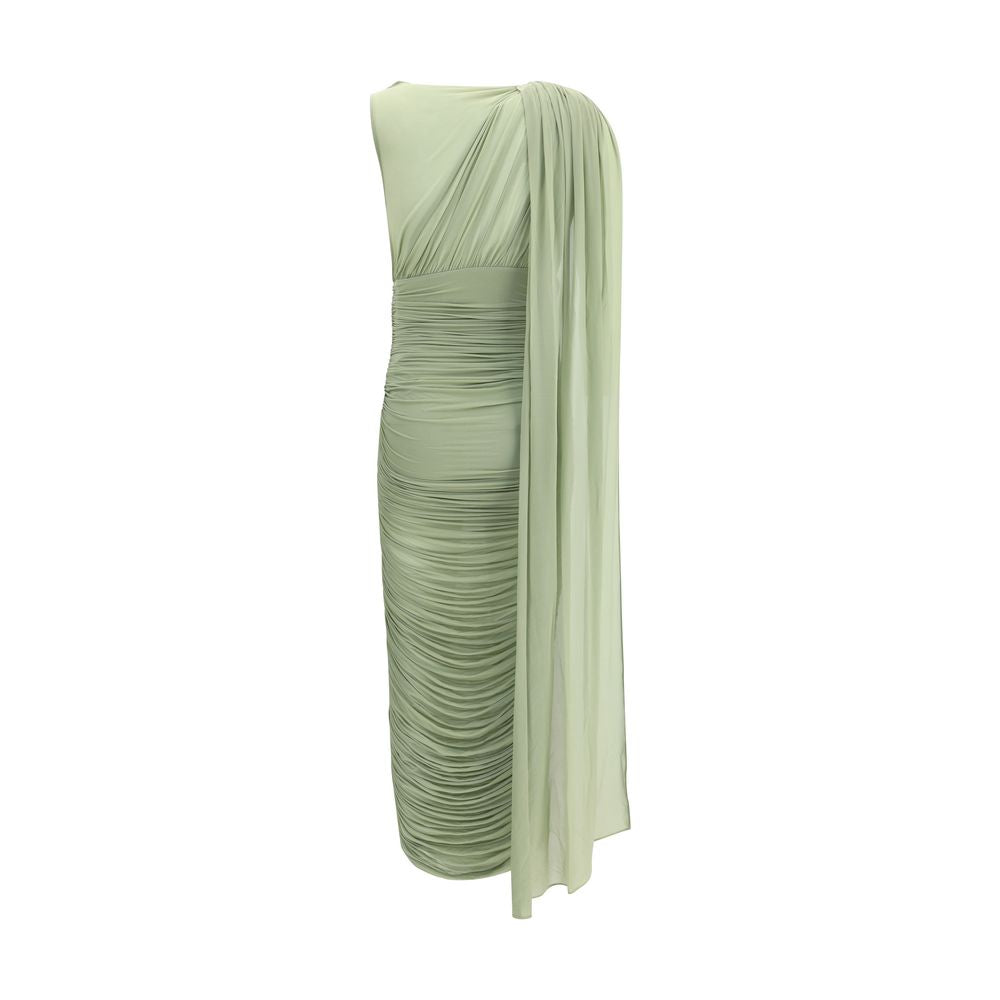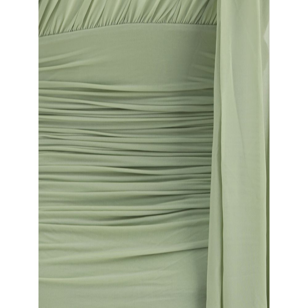 Magda Butrym’s draped midi Dress, featuring a sheer effect, hugs the body thanks to the expertly draped and gathered cupro fabric. The design is completed with a sash at the back that adds a touch of elegance, while the detachable romper ensures comfort and versatility, making it perfect for a sophisticated, modern look.