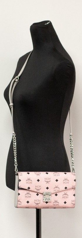 MCM Medium Soft Pink Signature Diamond Logo Leather Clutch Crossbody Handbag