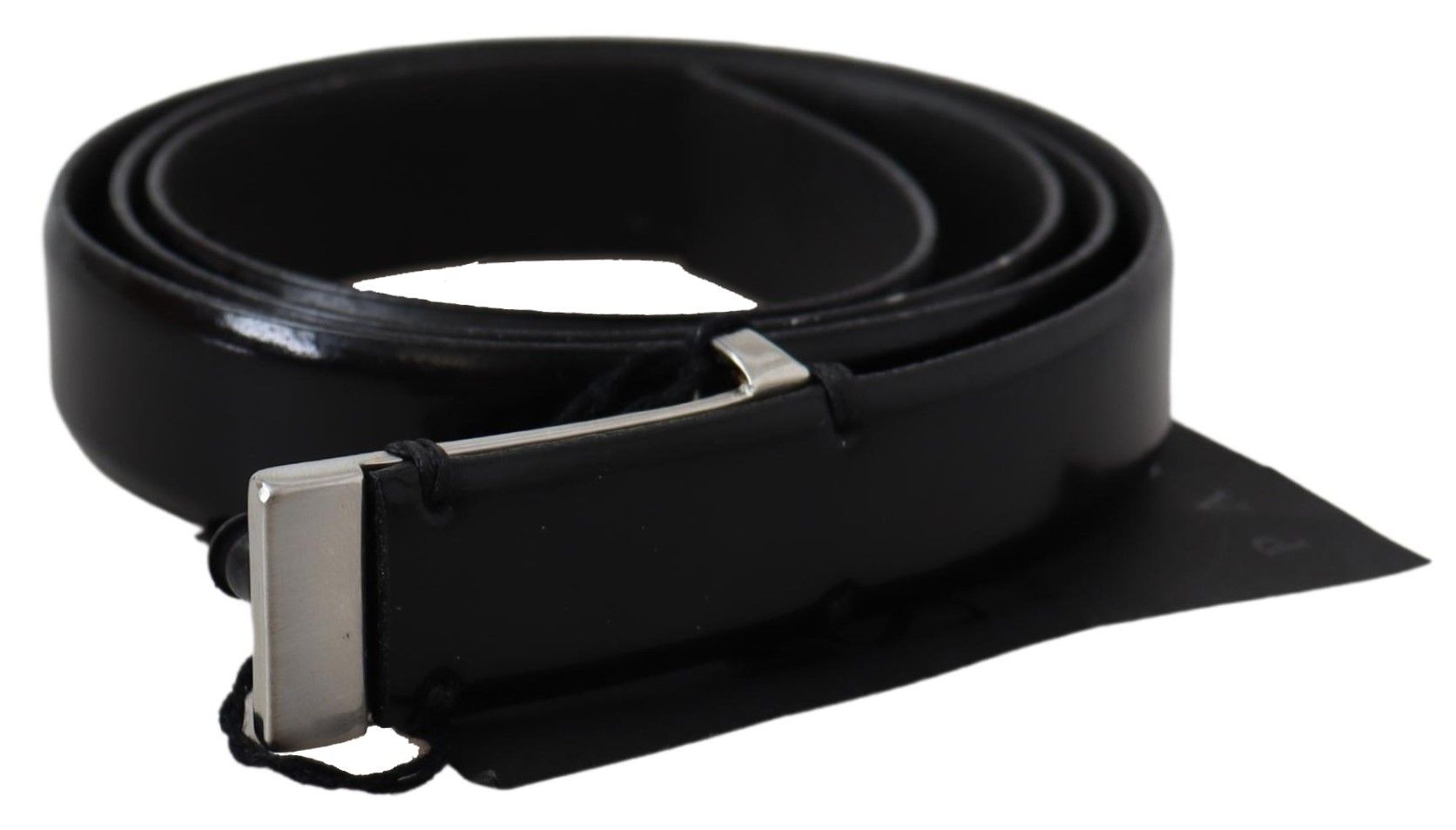 PLEIN SUD Black Leather Silver Chrome Metal Buckle Belt