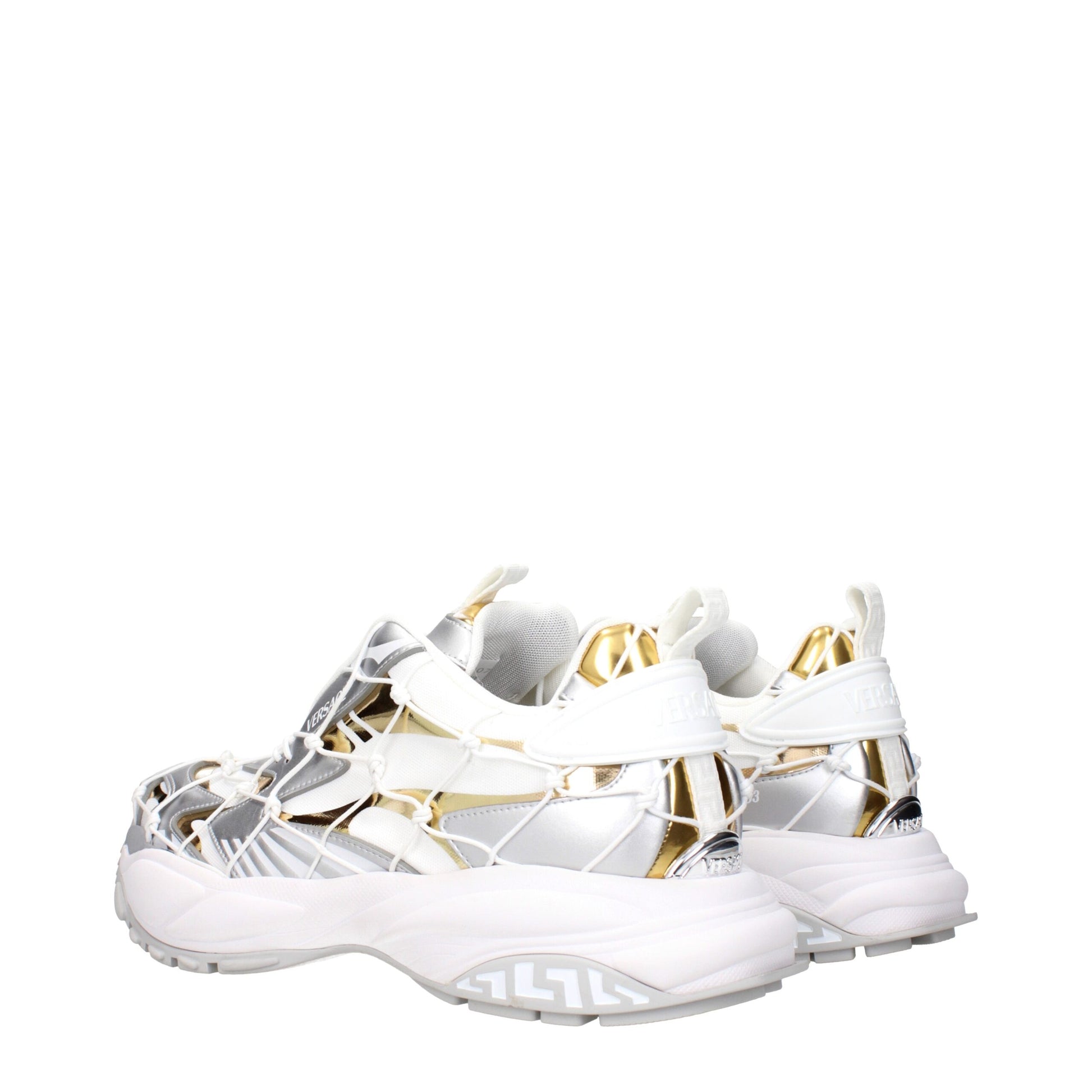 The product with MPN 10163071A115096W690 and code F84047 fabric in white is a sneakers designed by Versace. It has features like back logo.